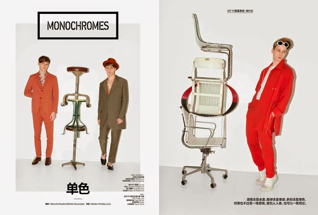 Brazilian photographer Marcelo Krasilcic snaps John Hein and Michael Lange in monochromatic looks for GQ Style China’s Spring/Summer 2014 issue…