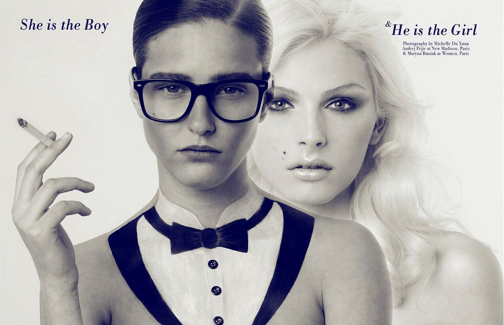 Carbon Copy #6 Model Andrej Pejic (with Maryna Buniak) Ph Michelle Du Xuan Uber-popular Andrej Pejic headlines this beauty feature in Carbon Copy’s sixth issue shot by Michelle Du Xuan and co-starring…