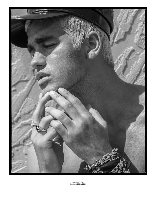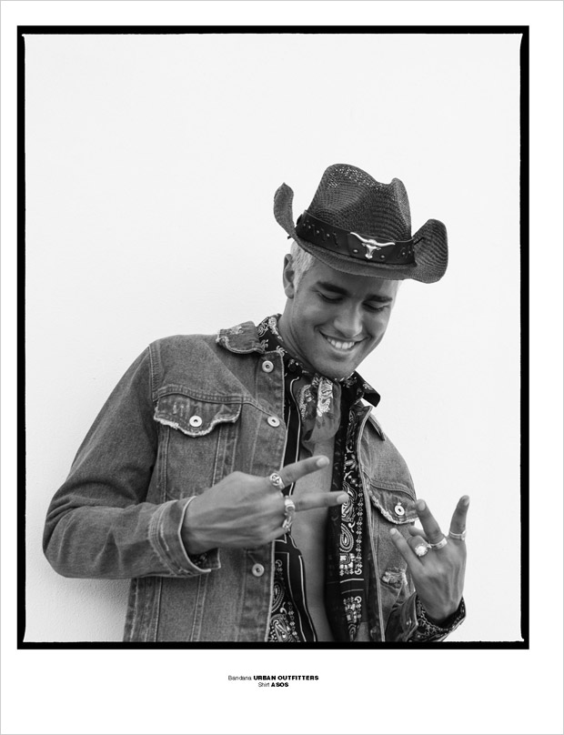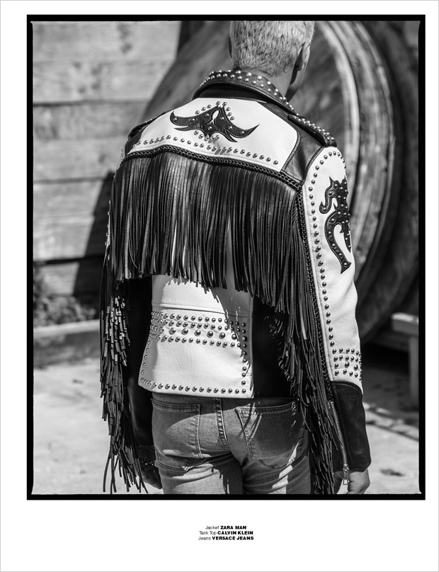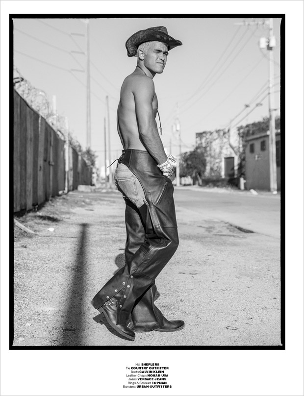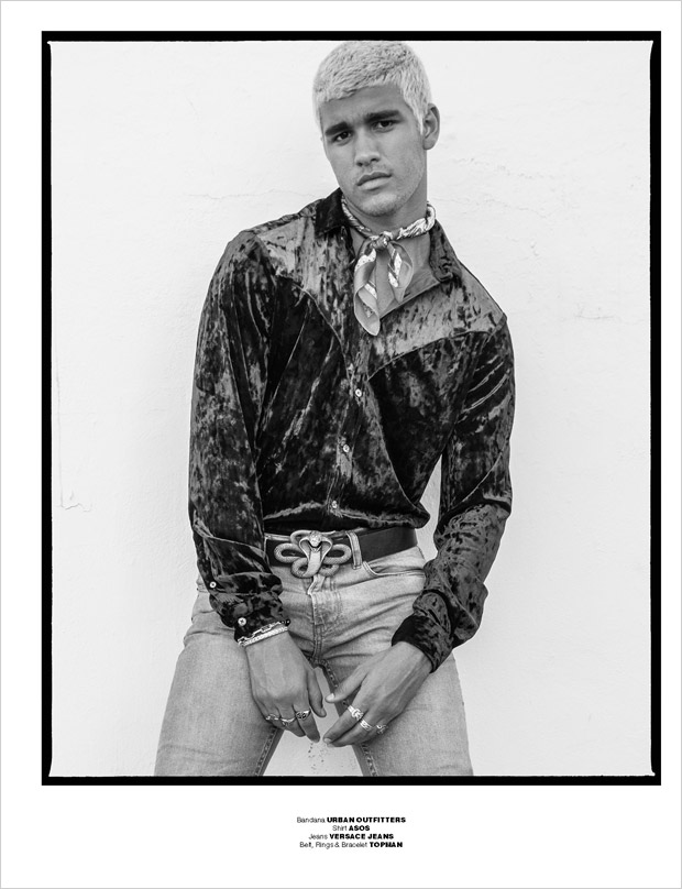 Styling is work of Mimi Tyko, who for the session selected pieces from Urban Outfitters, ASOS, Zara, Calvin Klein, Versace Jeans, Topman, Country Outfitter, Sheplers, Urban Outfitters, Levi’s, ASOS, Versace Jeans, Calvin Klein, Topman, Nomad USA, I.N.C, AB Hombre, and Aliexpress.” – Malemodelscene.net