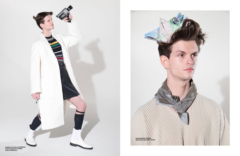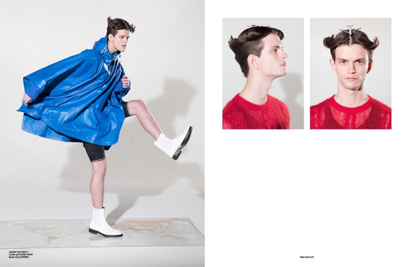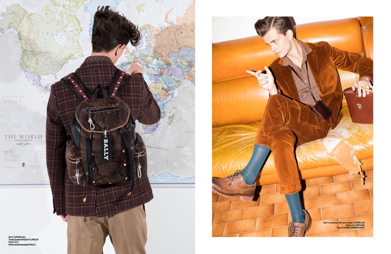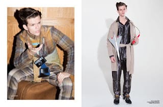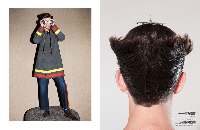 “José Vedovato goes quirky for the pages of AF Mag. Photographer Michele De Andreis captures José for a travel-inspired story entitled “Tales of a Modern Nomad.” Stylist Sabrina Mellace dreams up the concept and outfits José in fun designer looks. A quirky vision, José charms in a varied wardrobe. It includes smart pieces from brands such as J.W. Anderson, Corneliani, and Bally.” – TheFashionisto.com