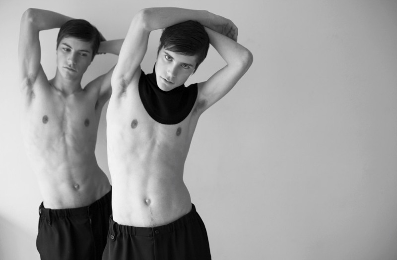 ‘Twins Tanguy Pepiot and Valentin Pepiot [Success], photographed by Eric Sposito and styled by Matthieu Pabiot’ – Courtesy of Homotography.blogspot.com
