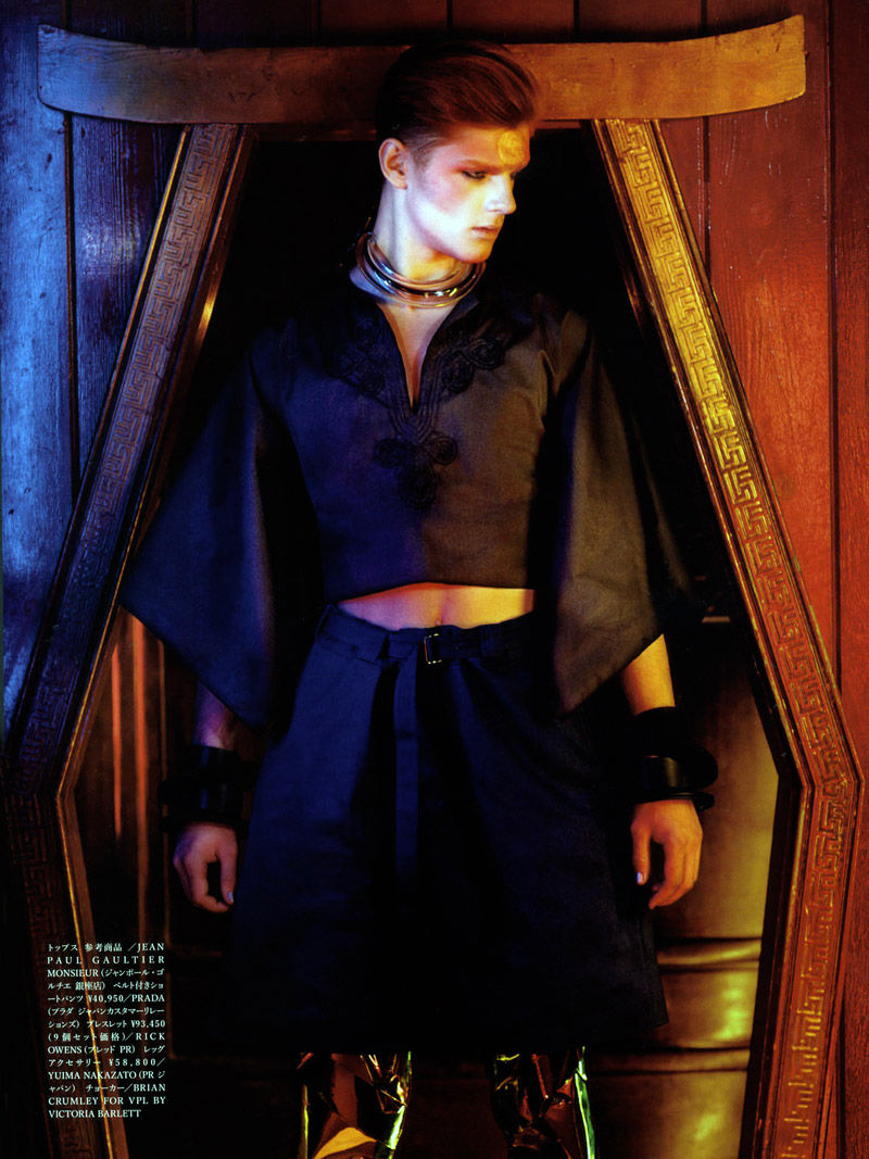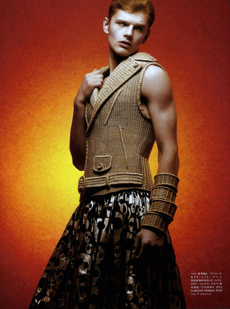 DNA / Success model Taras Koltun finds himself in a unique role for the spring/summer 2011 edition of Vogue Hommes Japan. Photographed as the Dragon Slayer by KT Auleta, Taras is styled in a generous selection of prints by Shun Watanabe for a spread that pulls from Comme des Garçons, Jil Sander, Prada and other labels in an interesting take on eastern ideas. Courtesy of – thefashionisto.com
