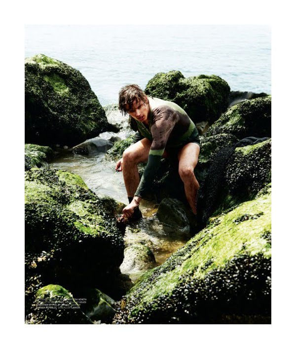 ‘Canadian model Taylor Fuchs hits the untamed outdoors for his most recent shoot with Blair Getz Mezibov for Black Book. Styled by Christopher Campbell, the Mode model steps into looks from the likes of Trussardi 1911 and Bottega Veneta that coincide with his surroundings.’ – Courtesy of thefashionisto.com