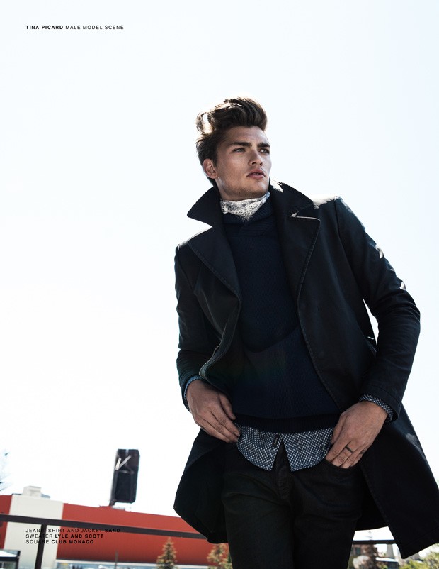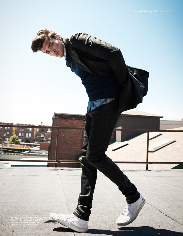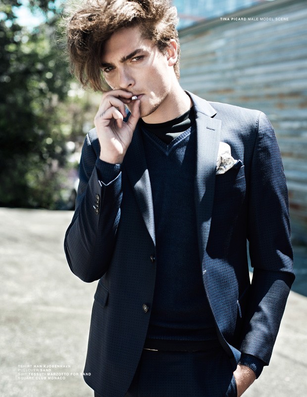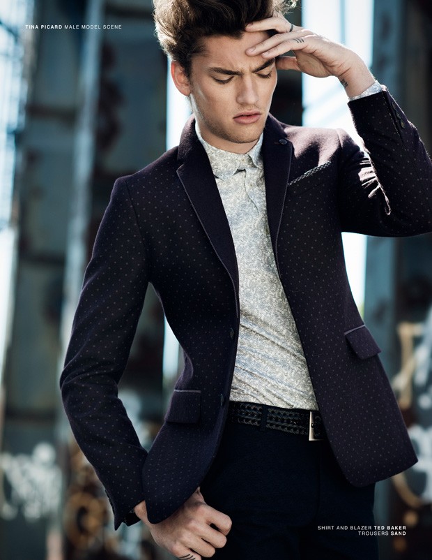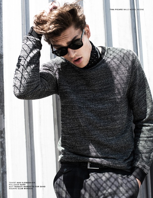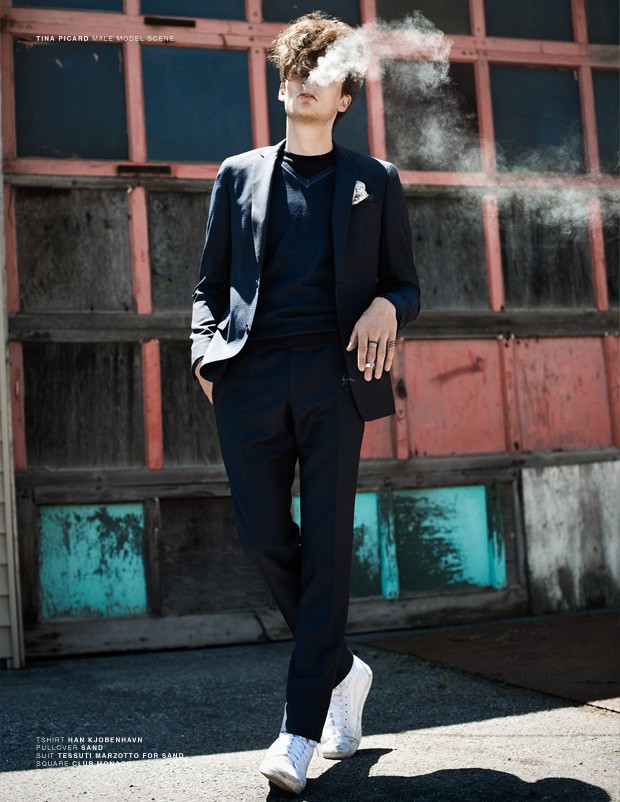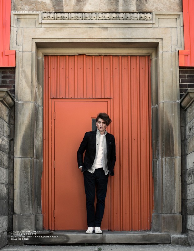 For the session Stephanie selected pieces from Ted Baker, Sand, Club Monaco, J. Lindeberg, Oliver Spencer, Han Kjobenhavn, Tessuti Marzotto for Sand, Vans, Lyle & Scott and Fred Perry.” – Malemodelscene.net