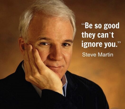 Steve Martin tells it like it is. Almost if not always. So him saying, “Be so good they can’t ignore you.” Is not only inspirational but so Steve.