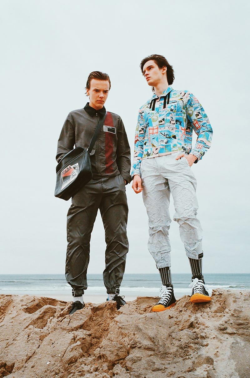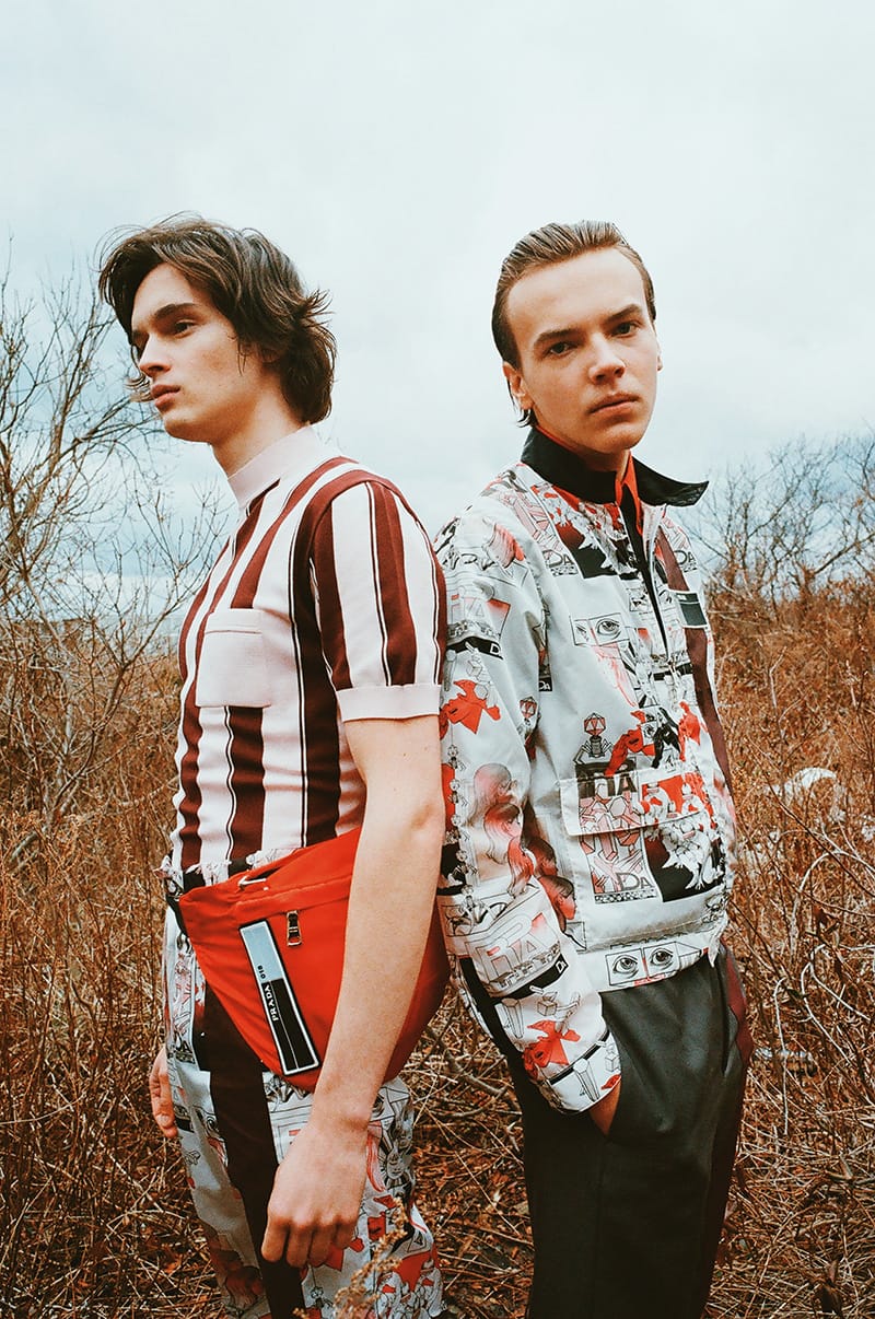 “Stanley Simons at NEXT and Sasha Komissarov at IMG photographed by Hannah Sider and styled by Nico Amarca with SS18 pieces from Prada, for Hypebeast.