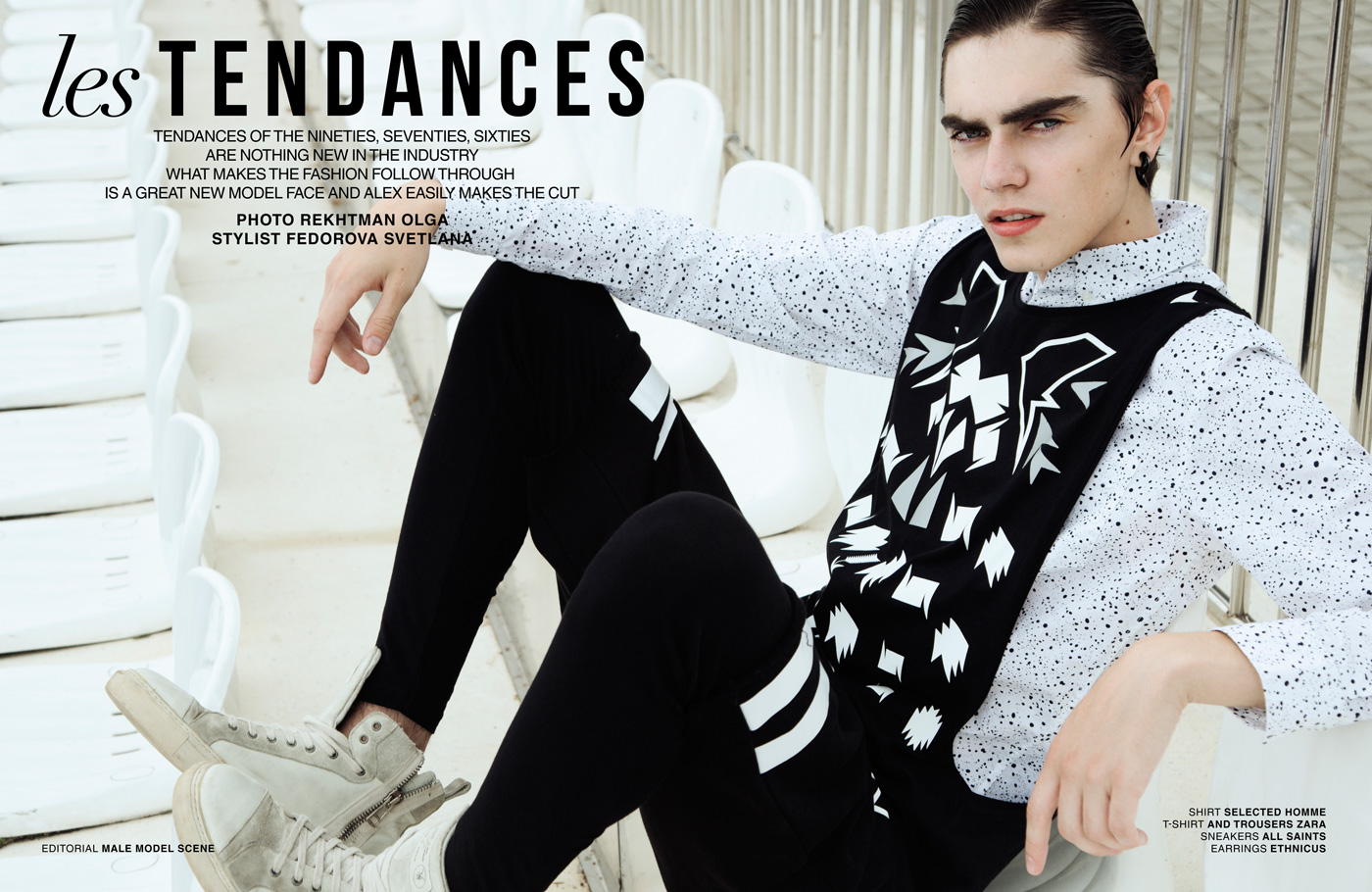 “Tendances of the nineties, seventies, sixties are nothing new in the industry, what makes the fashion follow through is a great new face. The promising Alex makes that cut and is posing for the latest MALE MODEL SCENE exclusive story shot by photographer Rekhtman Olga with styling from Fashion Stylist Fedorova Svetlana. Grooming by Lusy Kogan, Alex Storm is represented by NAME MANAGEMENT.” – Malemodelscene.net