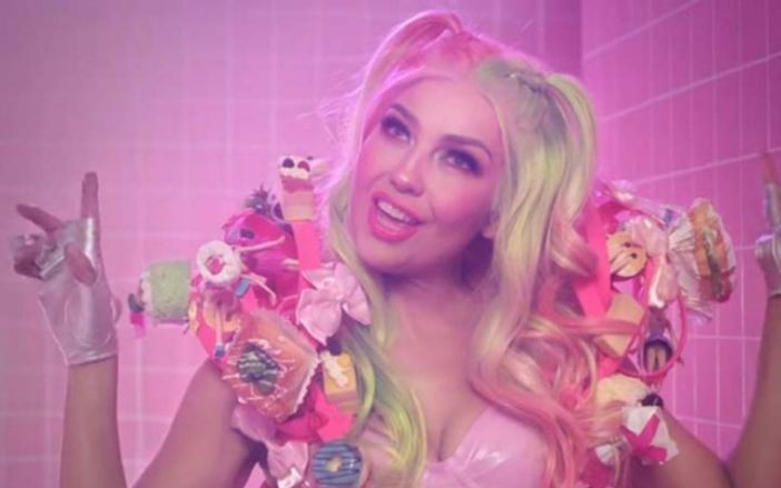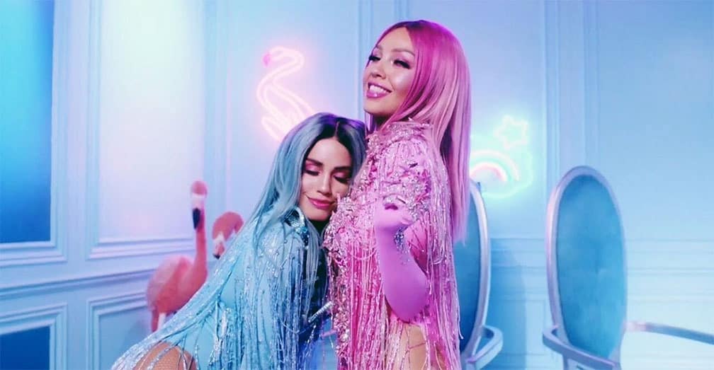 Directed by Daniel Duran, the iconic Latin singer brings along to the colorfully bold and entrancing playground, Argentine singer Lali. The twosome gals bring to life an impeccably recreated Barbie-inspired world filled wonderland complete with neon-drenched sweet treats.