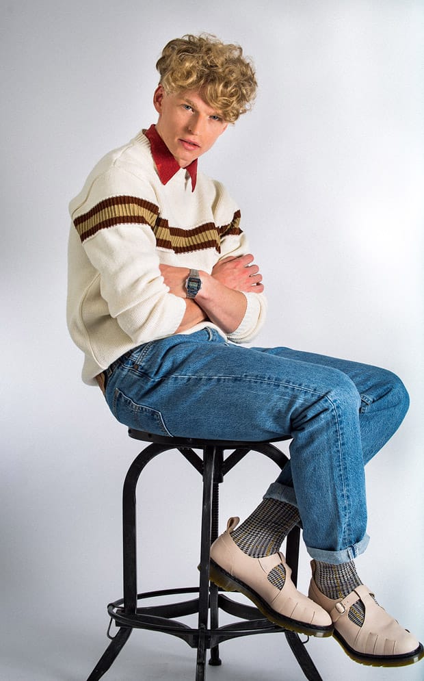 “Fashion photographer Alex Vesci shares with us his latest story inspired by the 80’s style featuring Jack George represented by Named Models. In charge of styling was Suhayla with hair and makeup by Selen Hurer. For the session Jack is wearing pieces from Burberry, Beyond Retro, Mantis World, Levi’s, London Sock Co, Dr Martens, and Casio.” – Malemodelscene.net