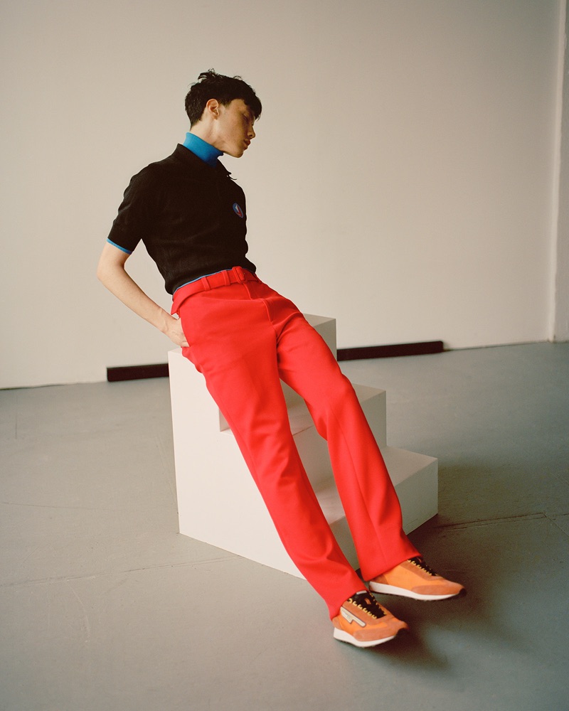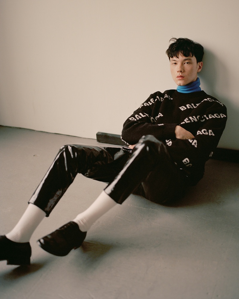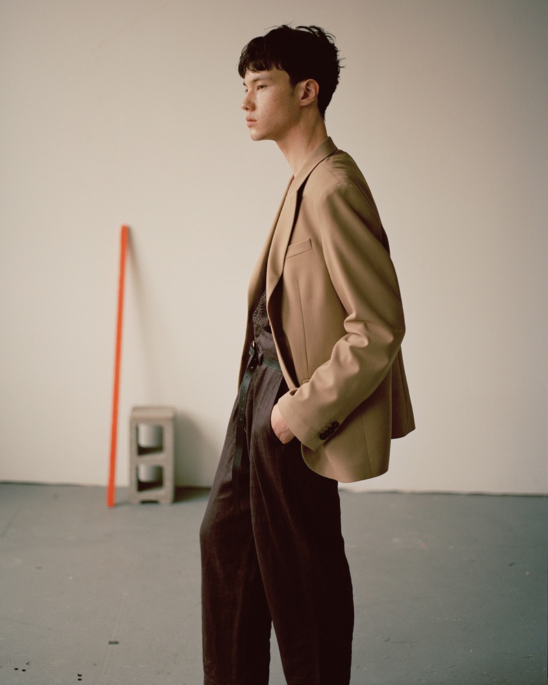 “Emile Woon takes up the lead for an online editorial from VMAN. An infectious sight, Emile charms in designer looks styled by Debbie Hsieh (See Management). Embracing modern proportions, Emile appears before the lens of photographer Zoltan Tombor (See Management). He inspires in a wardrobe of sweaters, slim-fit pants, lightweight coats, and more. Hsieh highlights brands like Gucci and Balenciaga.” – TheFashionist.com