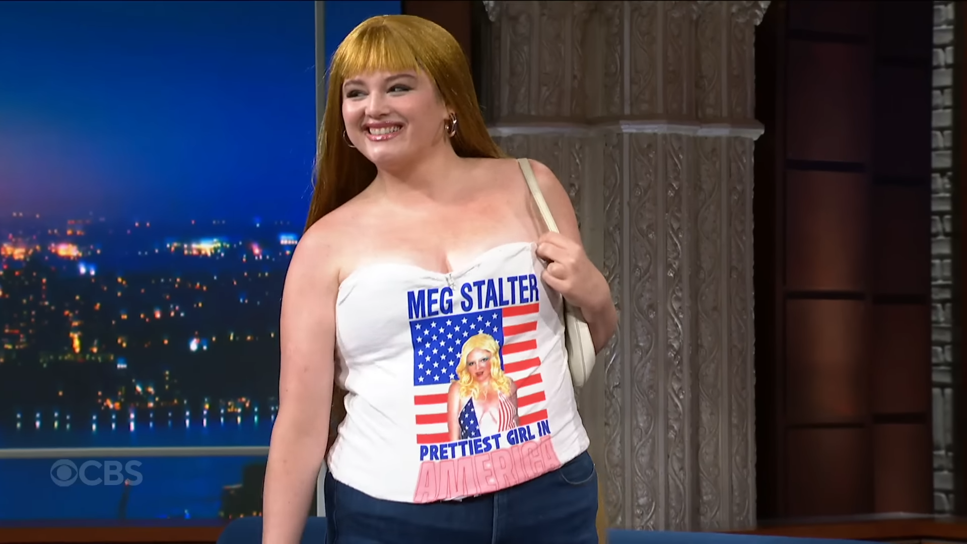 The Stephen Colbert talk show never looked so enchanting and stylish with the arrival of guest Megan Stalter.