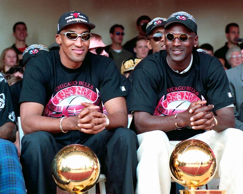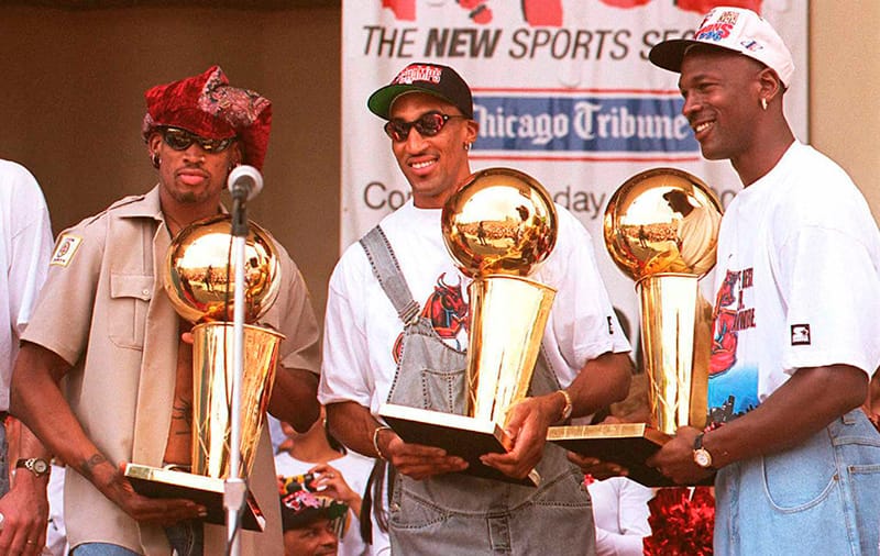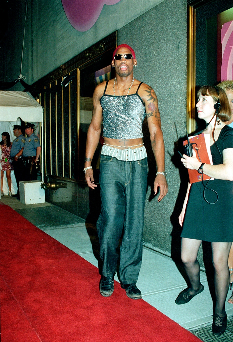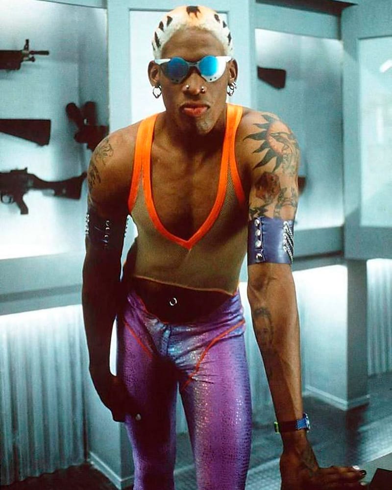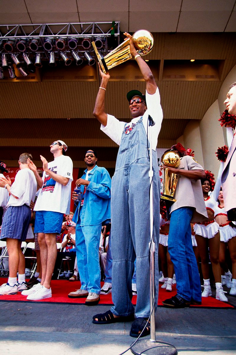 Dennis today is celebrated as before his time style visionary, but back in the day, Jordan was the hottest on the block. It wasn’t all bucket hats off-court, Scottie Pippen goes down in NBA fashion history for trucker hats and overalls like on a Mid-west mission!” – FY Magazine.es