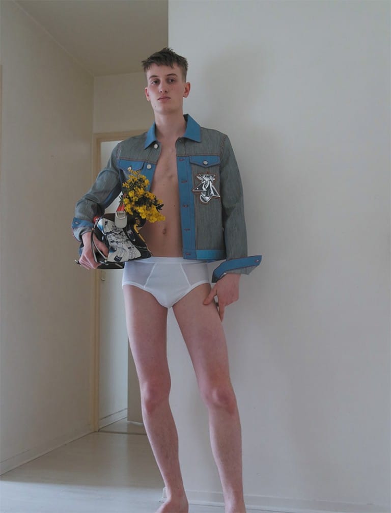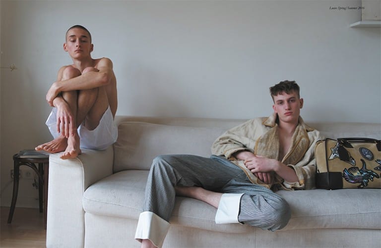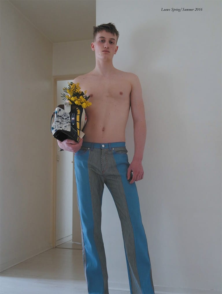 “Nicolas Scheltens at Elite Paris and Oskar at Rockmen photographed by Stas Kalashnikov and styled by Pau Avia with pieces from Loewe, for the SS16 “OUTSIDER” issue of Fucking Young! magazine.