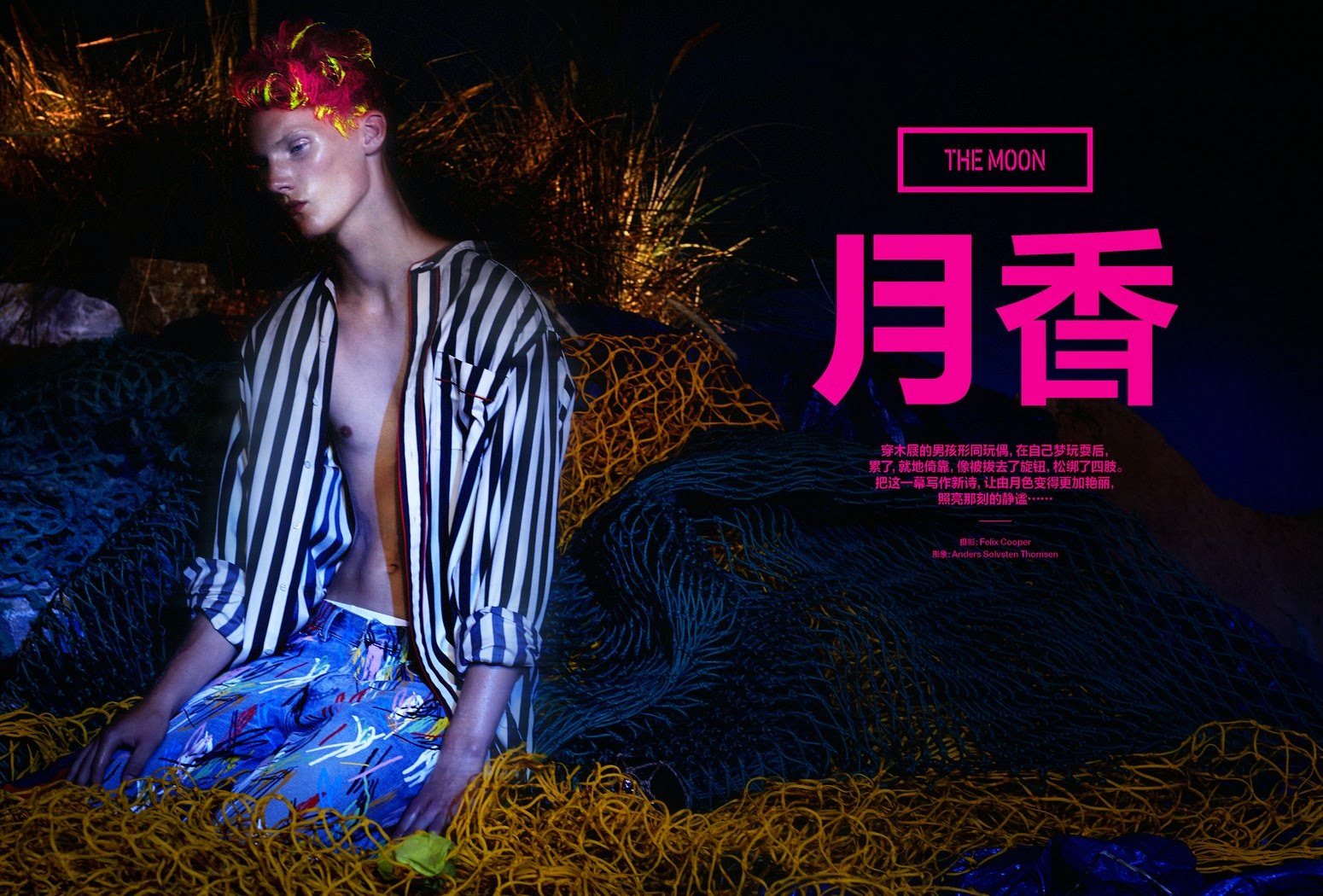 Models Carl Axelsson, Charlie James and Valters Medenis are photographed by Felix Cooper and styled by Anders Sølvsten Thomsen in the story “The Moon” for GQ Style China; with hair by Jose Quijano, makeup by Nami Yoshida and set design by Thomas Petherick. Courtesy of – Homotography