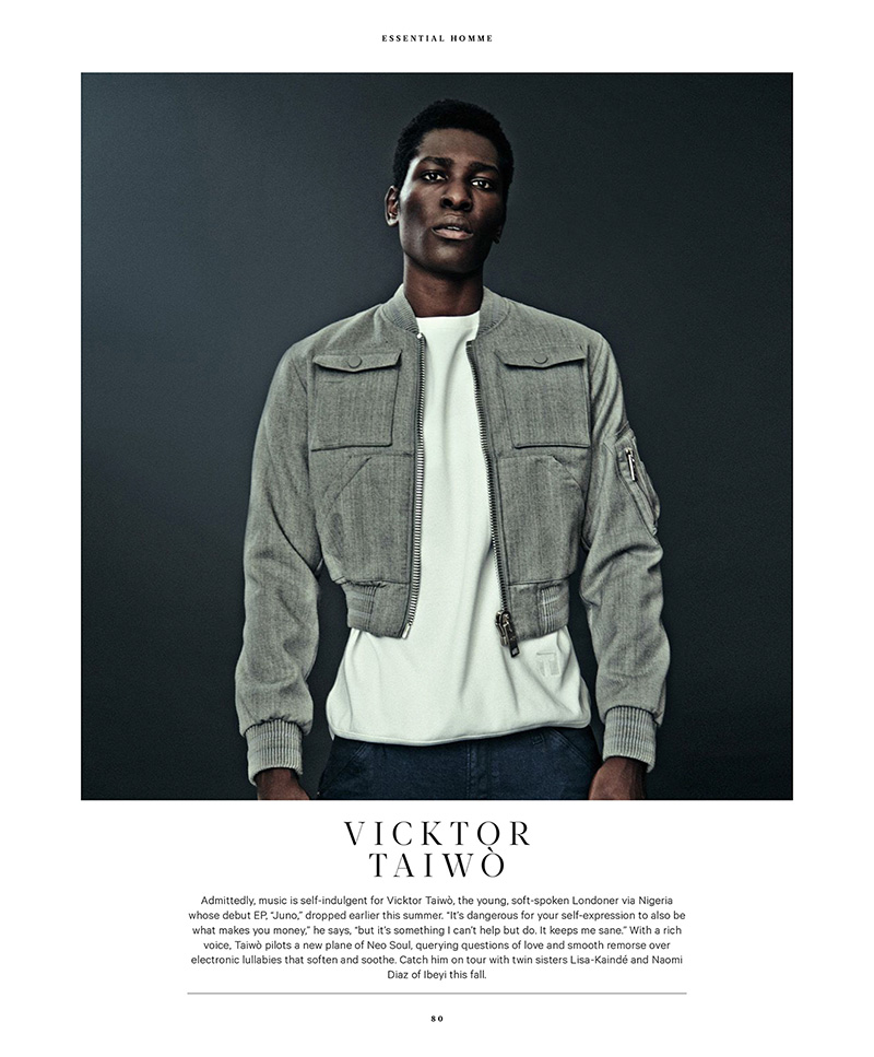 “Ryan Hemsworth, Rome Fortune, Khalif Diouf, Viktor Taiwò, Tom Krell and Luke James shot by Kevin Sinclair and styled by Terry Lu, for the latest issue of Essential Homme magazine.” – FY Magazine.es
