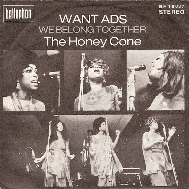 Anyway, point is: Classified ads were once a sufficiently established part of life that they inspired a #1 novelty hit. (They actually inspired two, but we’ll get to the other one later.) The Honey Cone’s “Want Ads” came into being when a studio engineer, while leafing through a newspaper, mused that someone should write a song about want ads. (His name was Barney Perkins, and he got a songwriting credit.)
