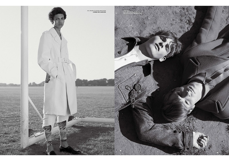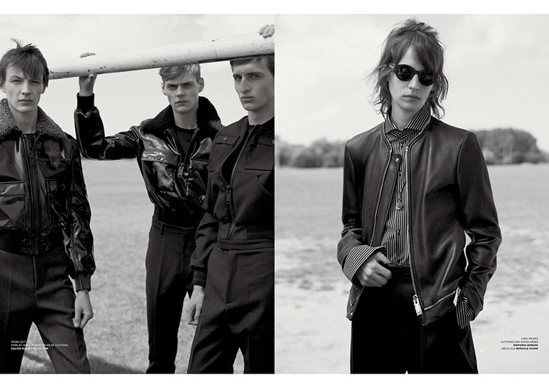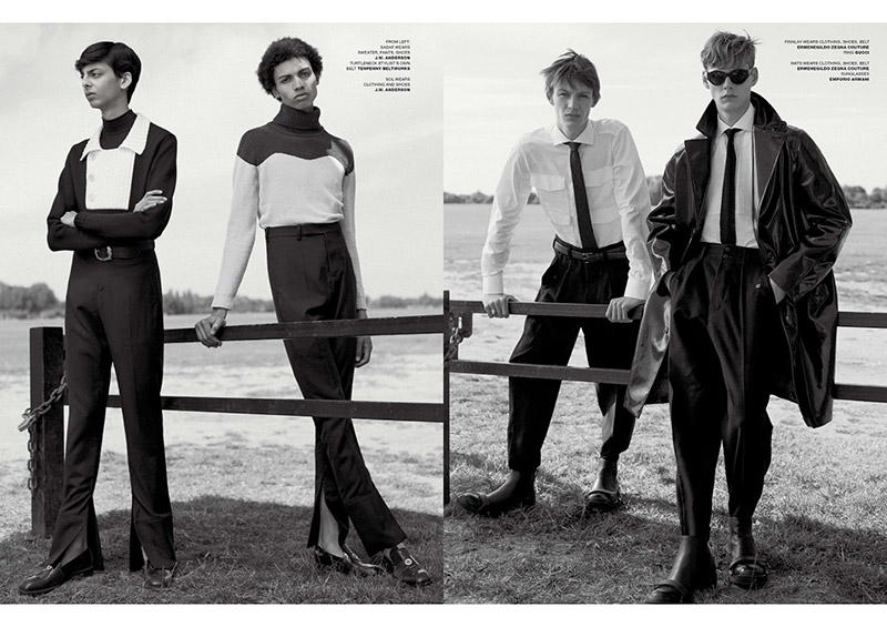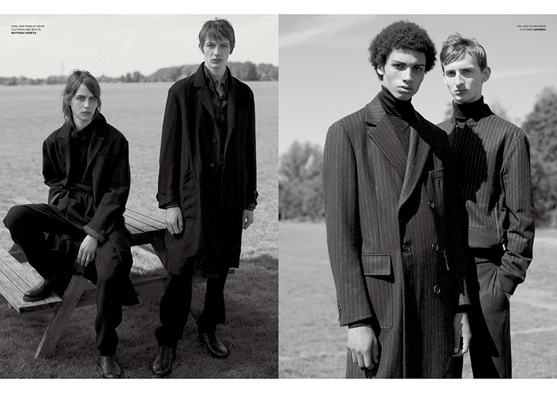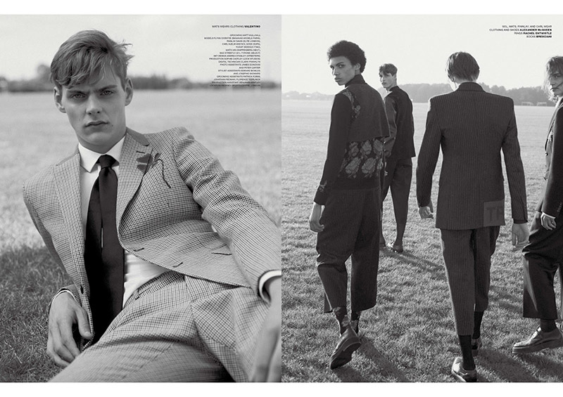 “Carl Hjelm, Finnlay Davis, Flynn Christie, Mats Van Snippenberg, Max Streetly, Sol Goss, Tyrone and Yusuf Siddiqui, shot by Benjamin Alexander Huseby and styled by Beat Bolliger, for the Fall/Winter 2015 issue of VMan magazine.” – FY Magazine.es
