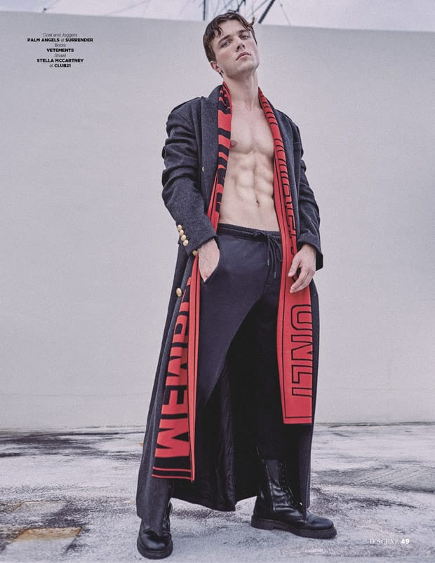 For the session Antoni is wearing selected pieces from Ami, Stella McCartney, Salvatore Ferragamo, Raf Simons, Lanvin, Vetements, Thom Browne, Undercover, Prada, Bottega Veneta , Yohji Yamamoto, Christian Louboutin, and Palm Angels.” – Malemodelscene.net