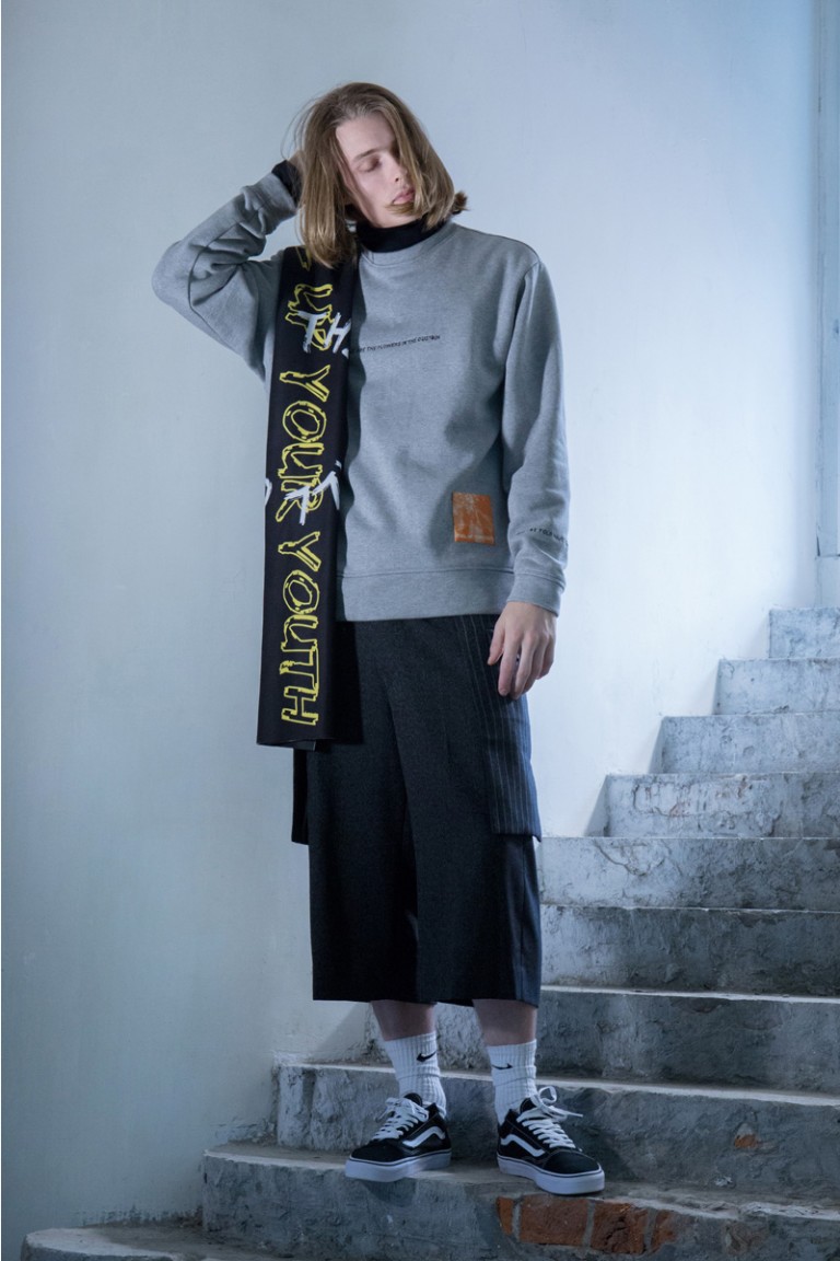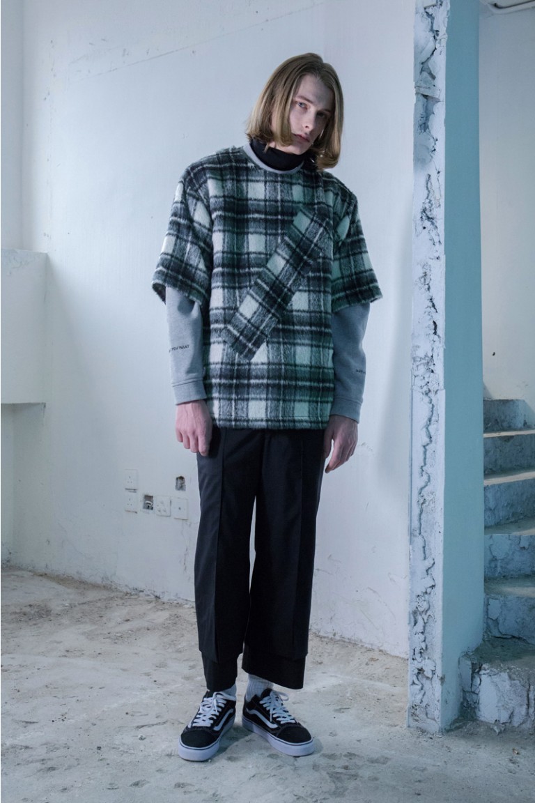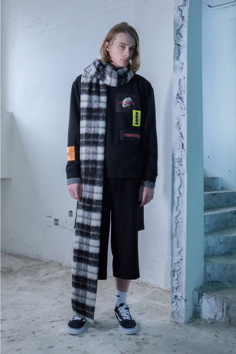 “The Fall/Winter 2016 collection of The World Is Your Oyster draws inspiration from the youth subculture in Britain that had been derived during the 70s-80s decade. The subculture is characterized by anti-establishment views, as well as promoting individual freedom in which it is similar to what have been happening in their own city recently. Where the youngsters have gradually develop their own perspective and the traditional mindset no longer fits for the new generation. It shows the creativity of this generation eager not to conform to capitalism, collusion and all sorts of social issues. They dare to voice out their opinions even with their limited power. Instead of living in the “MAINSTREAM”, they would rather be true to themselves like the flower that grows beautifully in the dustbin.