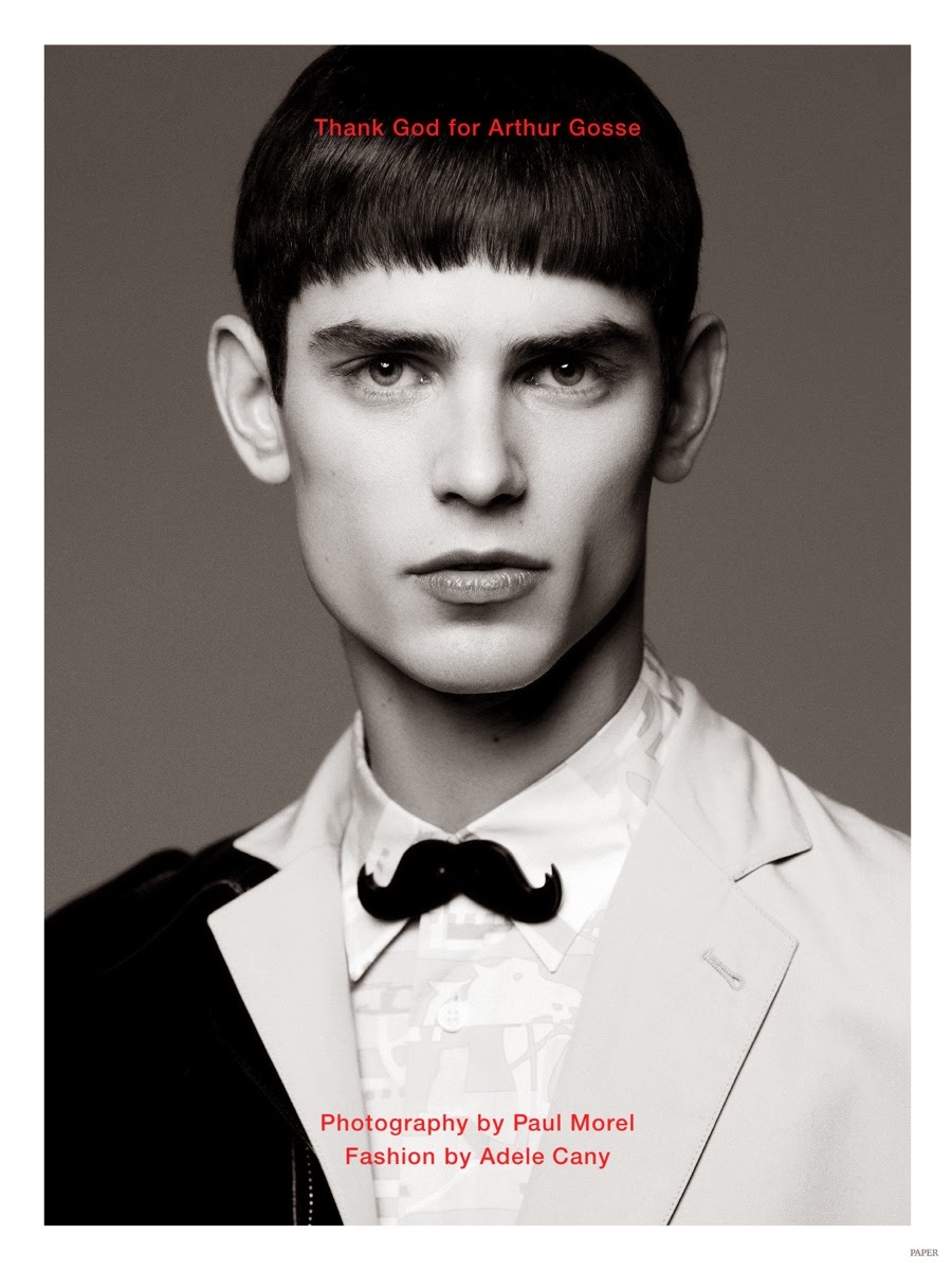 After an equestrian outing for Massimo Dutti, we catch up with French model Arthur Gosse in the pages of Paper magazine. Photographed by Paul Morel, Arthur embraces an eccentric persona as he delivers charming images, clad in spring fashions. Styled by Adele Cany, Arthur wears seasonal must-haves from labels such as Balmain, Prada and Dsquared2. / Hair by Mike Désir. Makeup by Alisonn Fetouaki. Post production by Julien Dauvillier.” – TheFashionisto.com