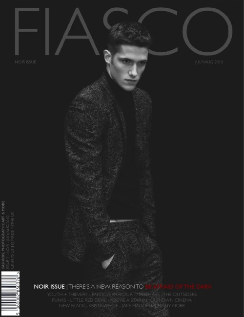 ‘Our favorite photography twins, Aline & Jacqueline Tappia, lensed the cover editorial of the new July/August Noir Issue of Fiasco magazine. ‘There’s a new reason to be afraid of the dark’ features model Elia Cometti with styling by Peter Cardona, grooming by Sissi Belloglio and make-up by Shu Emura.’ – Courtesy of Homotography.blogspot.com