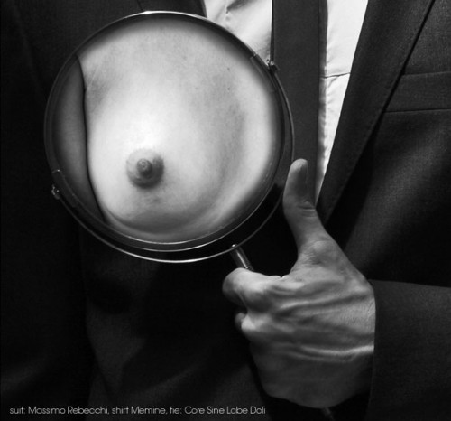 Juan Valentin the handsome Joy model is joined by female model Stella in the editorial ‘Ceci N’est Pas Un Reflet!,’ a homage to artist René Magritte in the new issue of Flamboyant magazine.