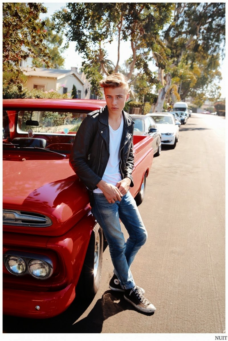 LUCKY BLUE CHANNELS 1950S STYLE IN DENIM & LEATHER BIKER JACKET FOR NUIT SHOOT