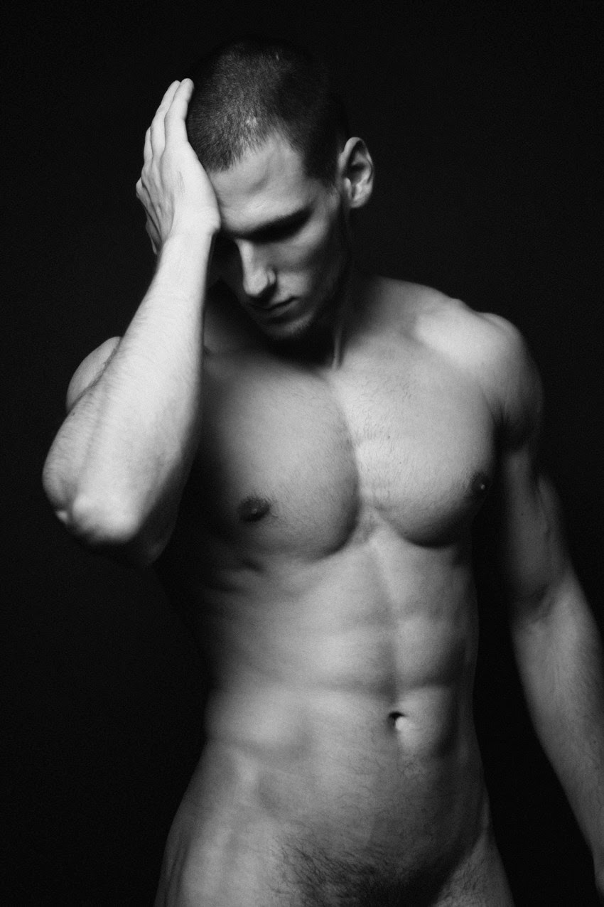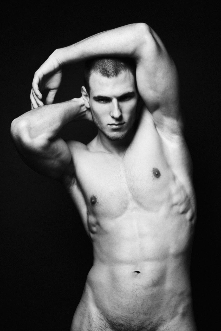 Russian model Tim in a nude black & white shoot by Marat Mukhonkin. Courtesy of – Homotography