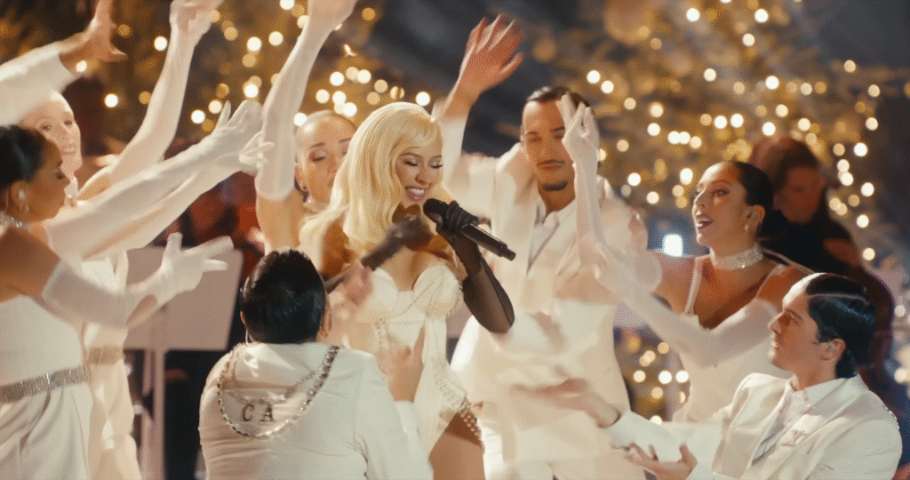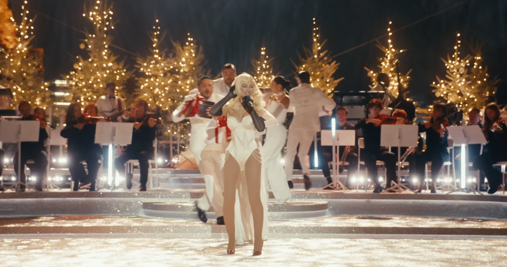 This release arrives ahead of her holiday music film, hitting theatres December 14 & 21 only. The film promises festive grandeur, blending live performances with stylized visuals.