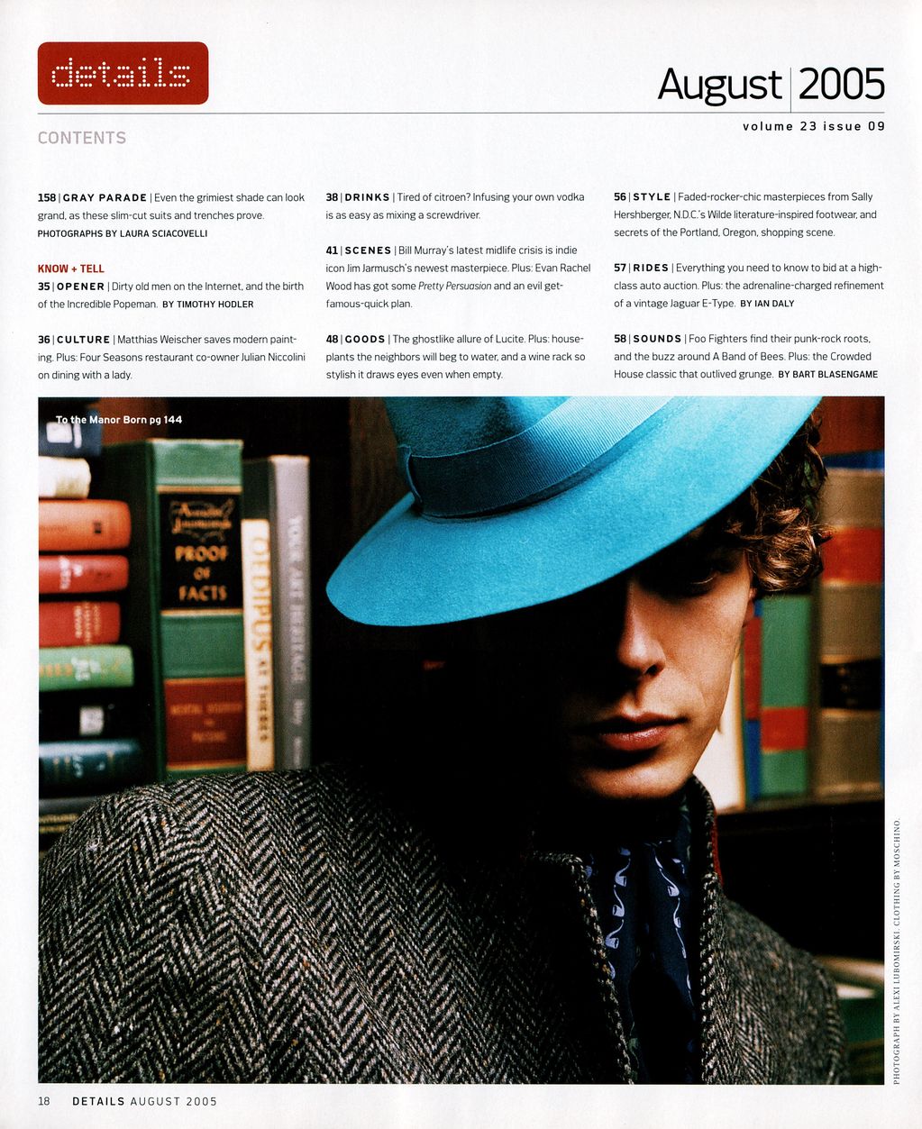 DETAILS — AUGUST 2005 TO THE MANOR BORN photographer: Alexi Lubomirski stylist: Joanne Blades MODEL(S): Gaspar Dietrich…