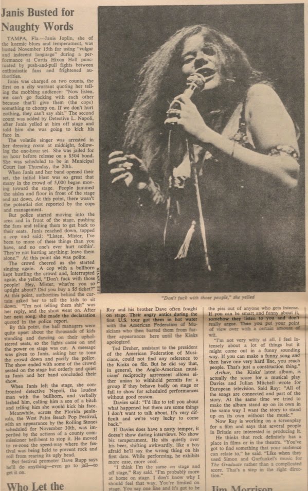The day was November 15, 1969, white rock and roll soul singer Janis Joplin was arrested while performing a show in Florida as she heckled police as they attempted to control the 3,500 person crowd with bullhorns. “Don’t fuck with those people” she was reported shouting.