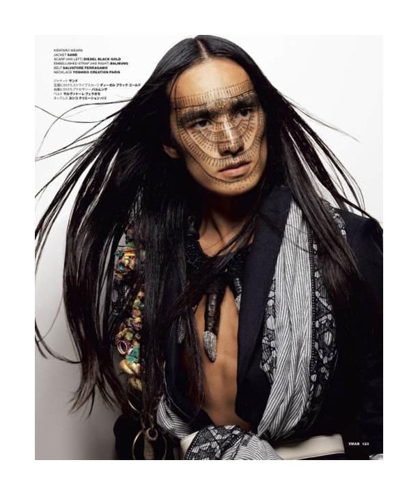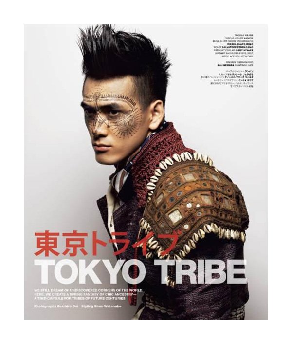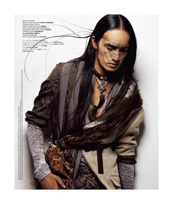 “Shun Watanabe outfits Sen Mitsuji, Yuusuke Hirose, Riku Ootomo, Takeshi Uematsu and Kentaro Sawano for the current issue of VMAN. Going for a modern tribal feel, prominently dark colors come together with intensive prints for a spread photographed by Koichiro Doi.” -Fashionisto