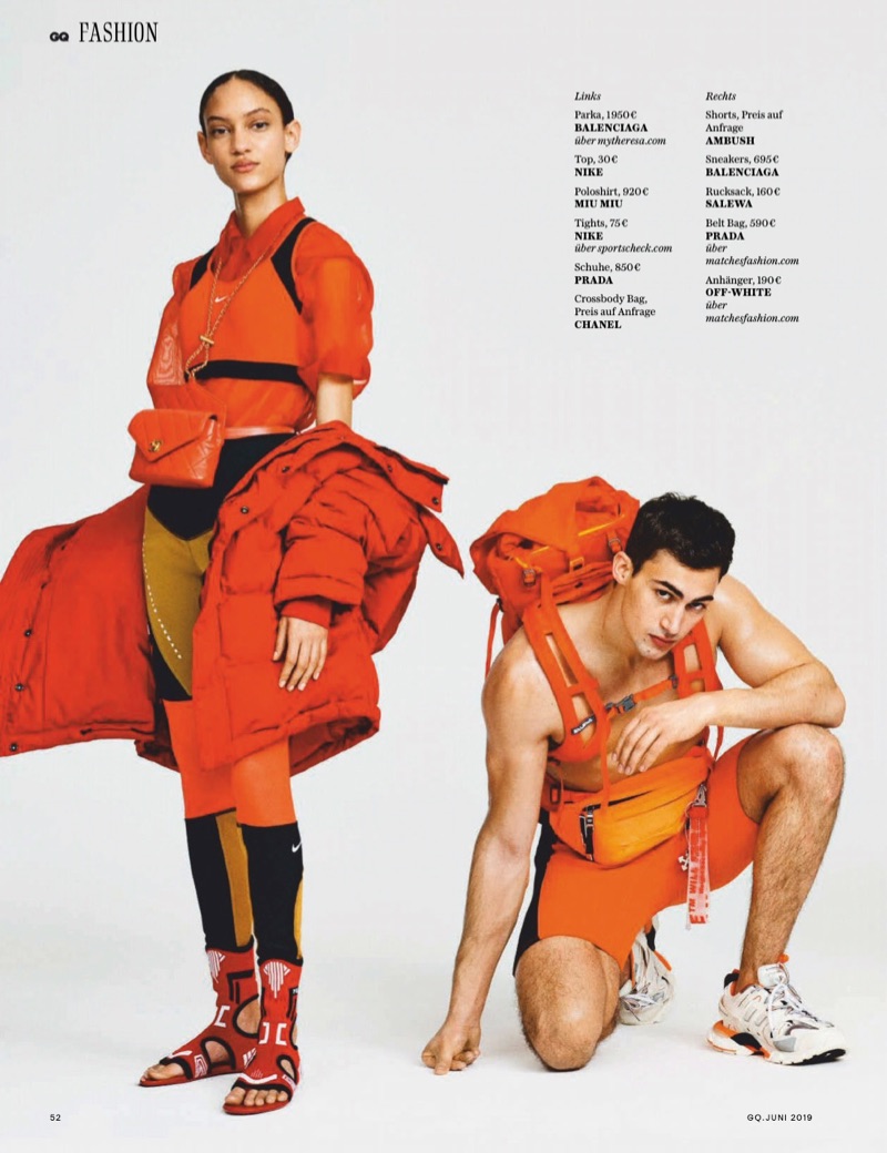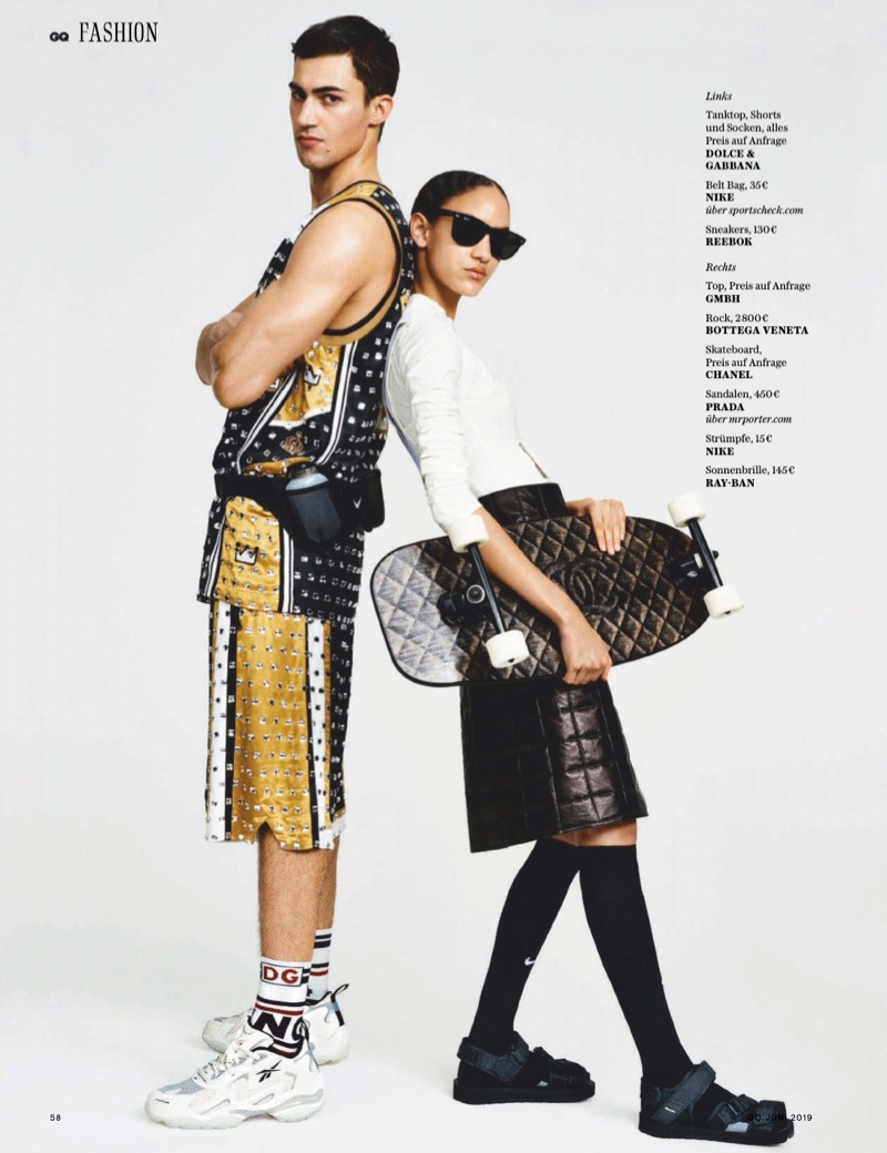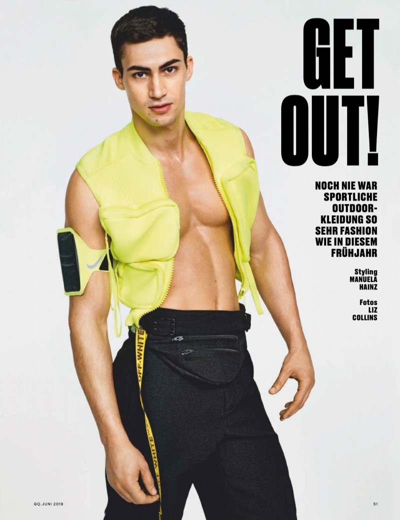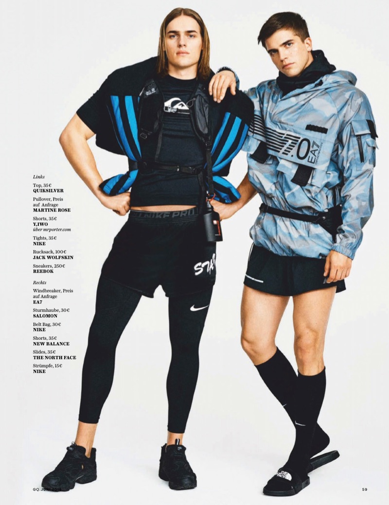 “Alessio Pozzi, River Viiperi, and Ton Heukels showcase sporty style for the June 2019 issue of GQ Germany. The trio joins model Nayell Figureoa for the editorial. Tackling sports-inspired looks from the spring-summer 2019 collections, the models appear before the lens of photographer Liz Collins. Stylist Manuela Hainz outfits Ton, River, and Alessio in bold fashions, which include brands such as Martine Rose, Dolce & Gabbana, and Salvatore Ferragamo.” – TheFashionisto.com