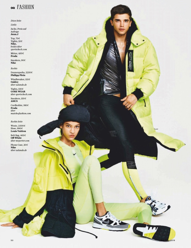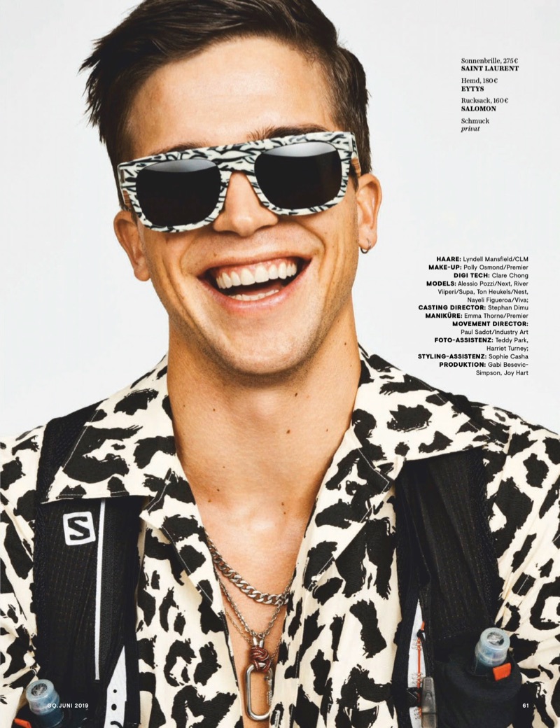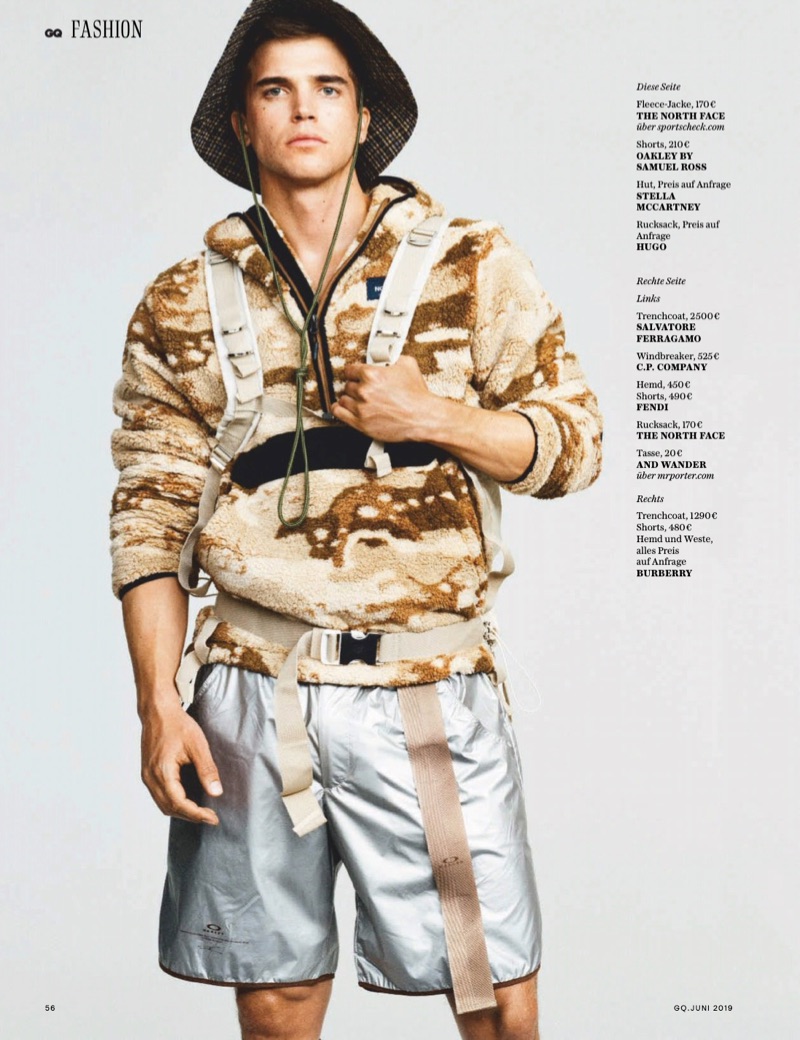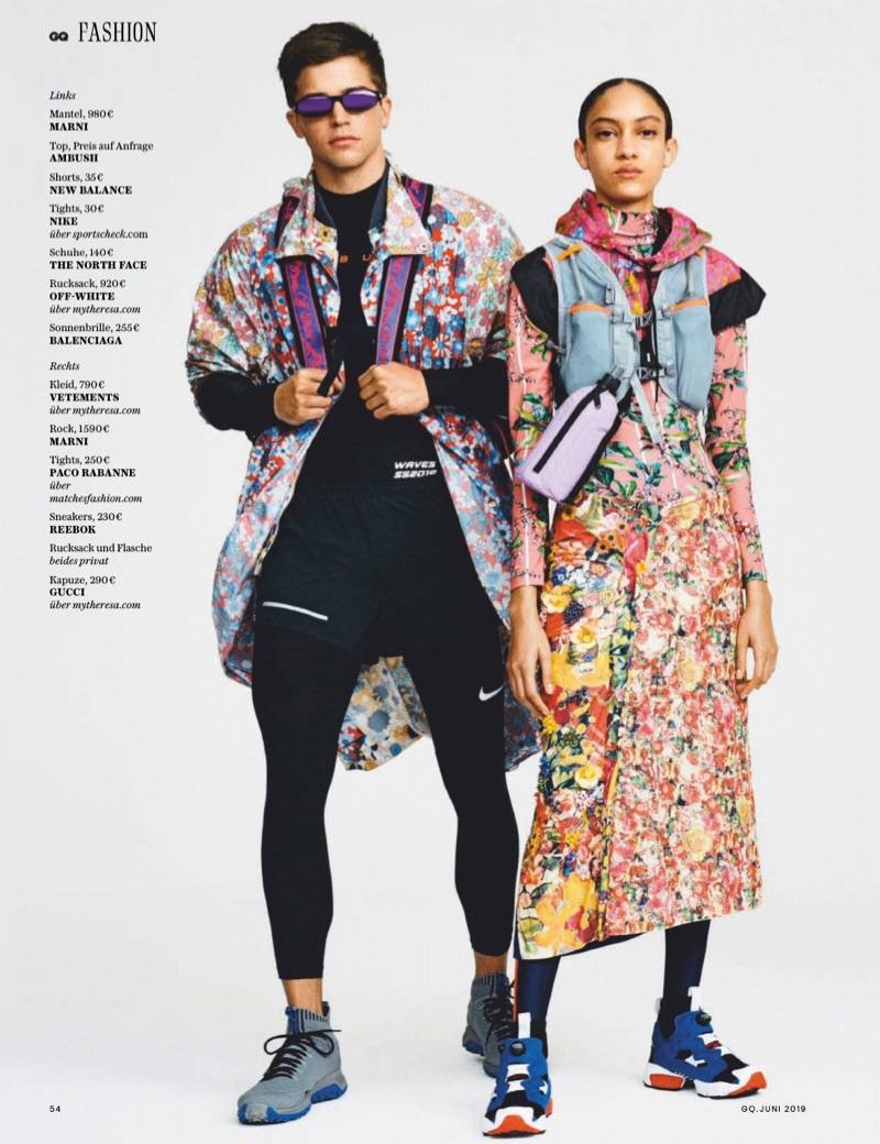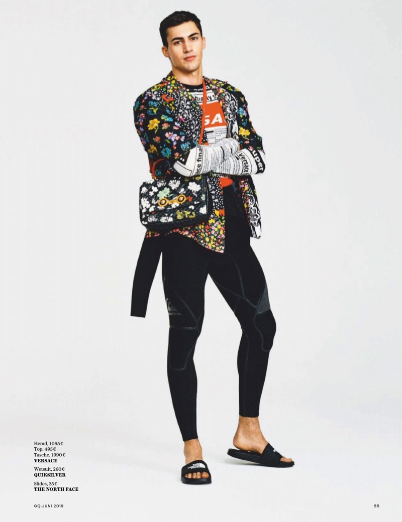 “Alessio Pozzi, River Viiperi, and Ton Heukels showcase sporty style for the June 2019 issue of GQ Germany. The trio joins model Nayell Figureoa for the editorial. Tackling sports-inspired looks from the spring-summer 2019 collections, the models appear before the lens of photographer Liz Collins. Stylist Manuela Hainz outfits Ton, River, and Alessio in bold fashions, which include brands such as Martine Rose, Dolce & Gabbana, and Salvatore Ferragamo.” – TheFashionisto.com