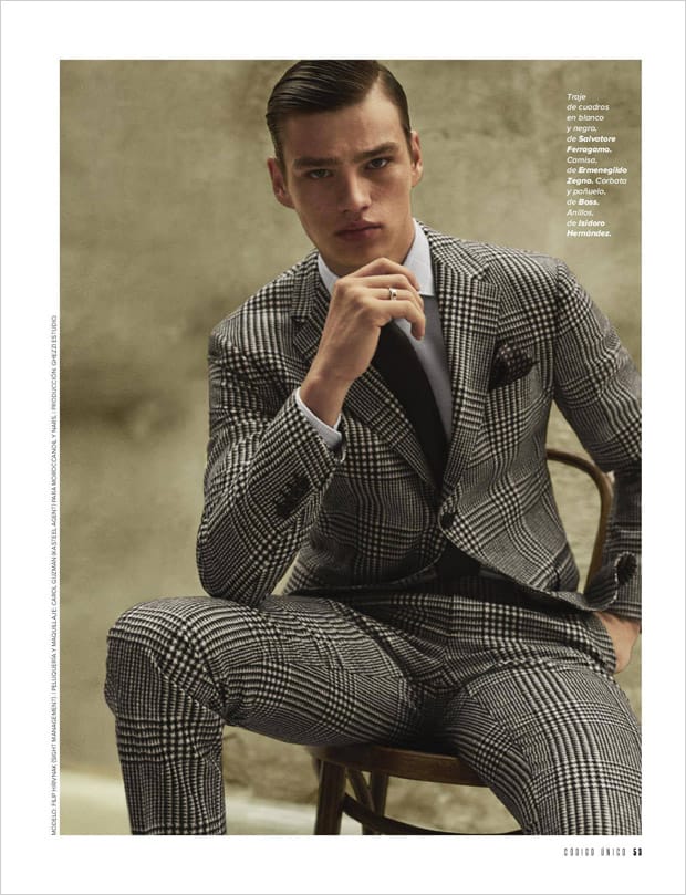 “Top model Filip Hrivnak takes the cover story of Codigo Unico‘s September 2016 edition lensed by fashion photography duo Hunter & Gatti. In charge of styling was Jesus Cicero, with creative direction from Beatriz Tarrega. For Trajes de Altura story Filip is wearing selected pieces from brand such as Dior Hommme, Boss Tailored, Ermenegildo Zegna, Hermes, Salvatore Ferragamo, and Brunello Cucinelli to name a few.” – Malemodelscene.net