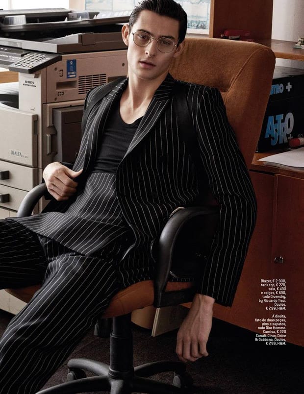 “Top model Rhys Pickering teams up with fashion photographer Branislav Simoncik for Conference Call story coming from the pages of GQ Portugal‘s latest edition. In charge of styling was Jan Kralicek, with casting direction from Dominika Svetikova. For the story Rhys is wearing selected looks from the likes of Canali, Emporio Armani, Ermenegildo Zegna, Loewe, Dolce & Gabbana, Dior Homme, and Givenchy among other.” – Malemodelscene.net