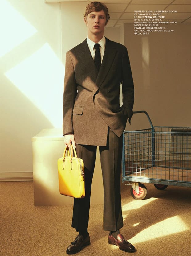 “Top model Tim Schuhmacher teams up with fashion photographer Carlotta Manaigo at 2b Management for Agent Secret story coming from the pages of L’ Express STYLES Paris‘ latest edition. In charge of styling was Isabelle Thiry, who for the session selected pieces from the likes of Jil Sander, Paul Smith, Sandro, Dior Homme, Giorgio Armani, Gucci, Dolce & Gabbana, and Marni among other. Grooming is courtesy of Michael Jones.” – Malemodelscene.net