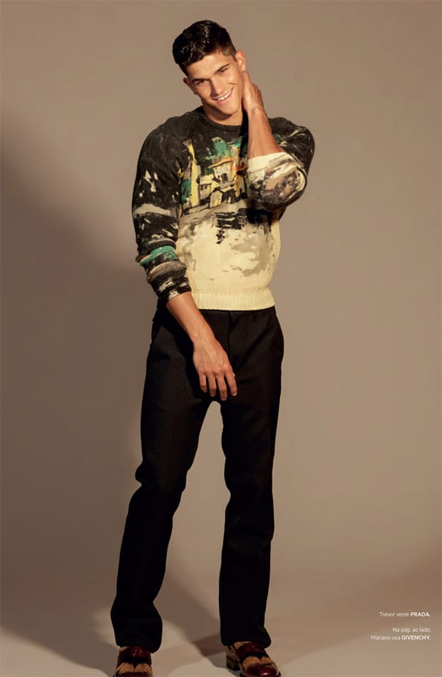 “For the session models are wearing selected looks from top brands such as Prada, Gucci, Dolce & Gabbana, Versace, Stella McCartney, and Calvin Klein among other. ” – Malemodelscene.net