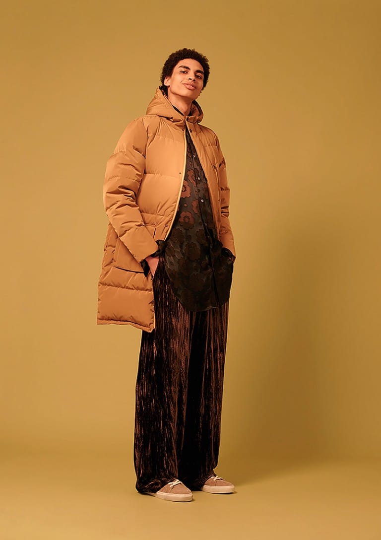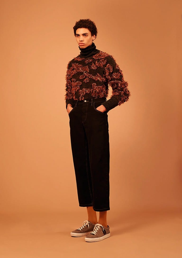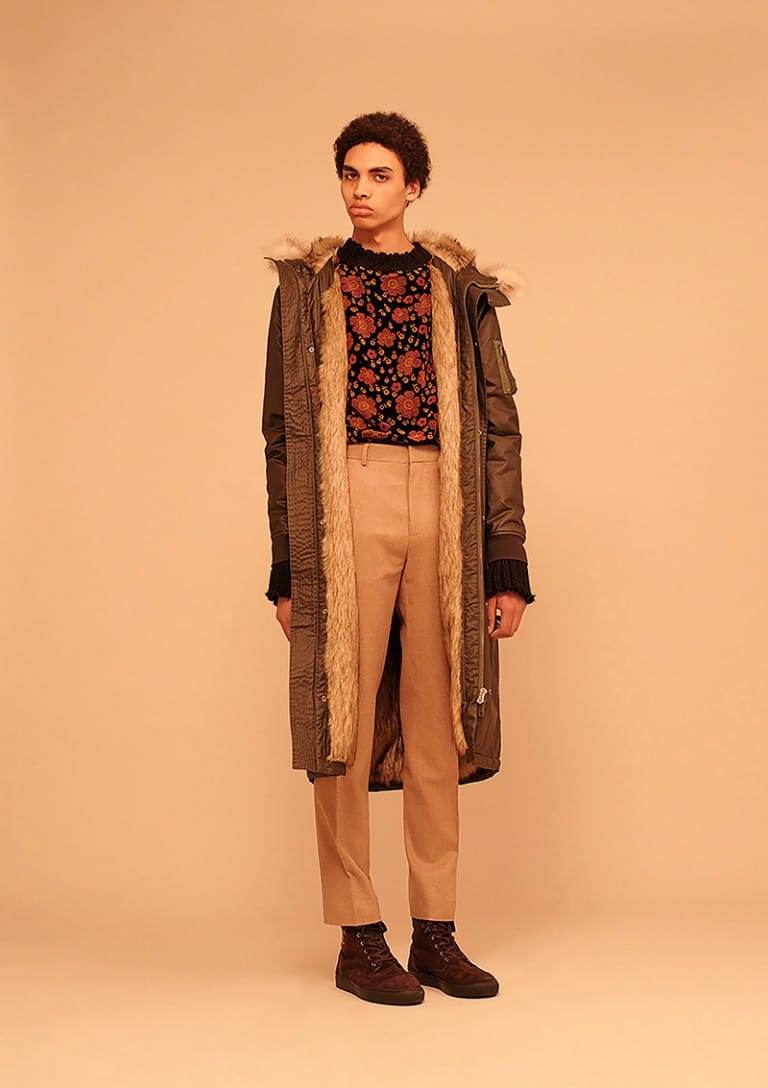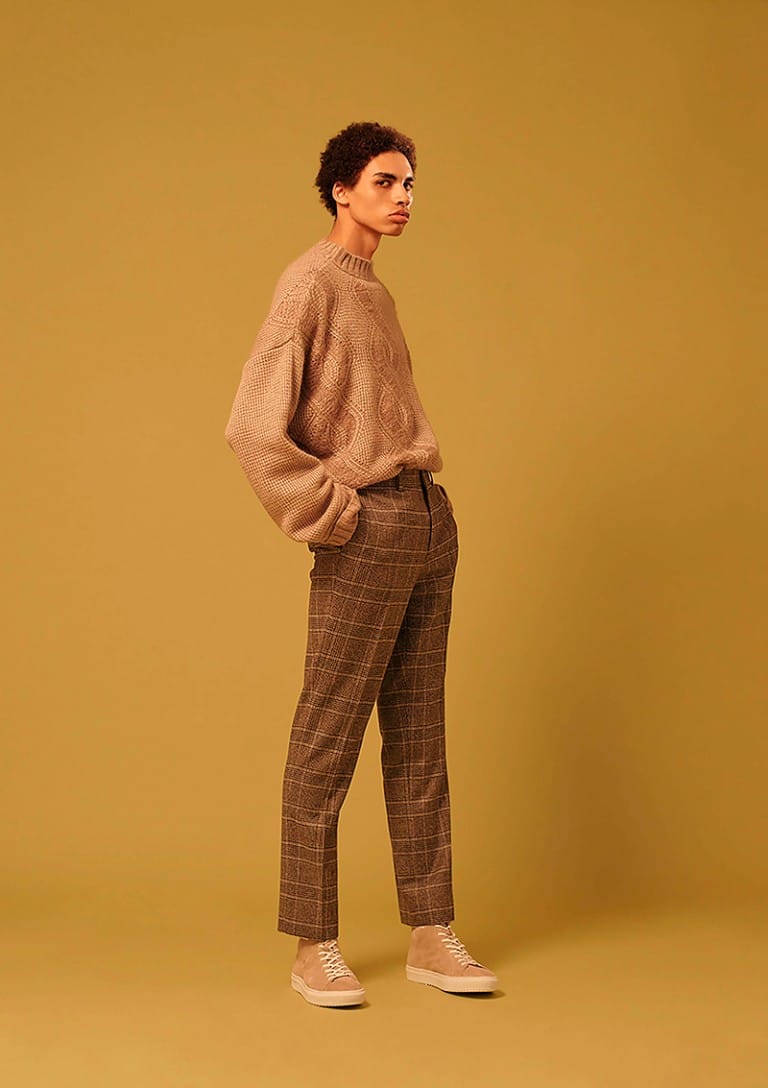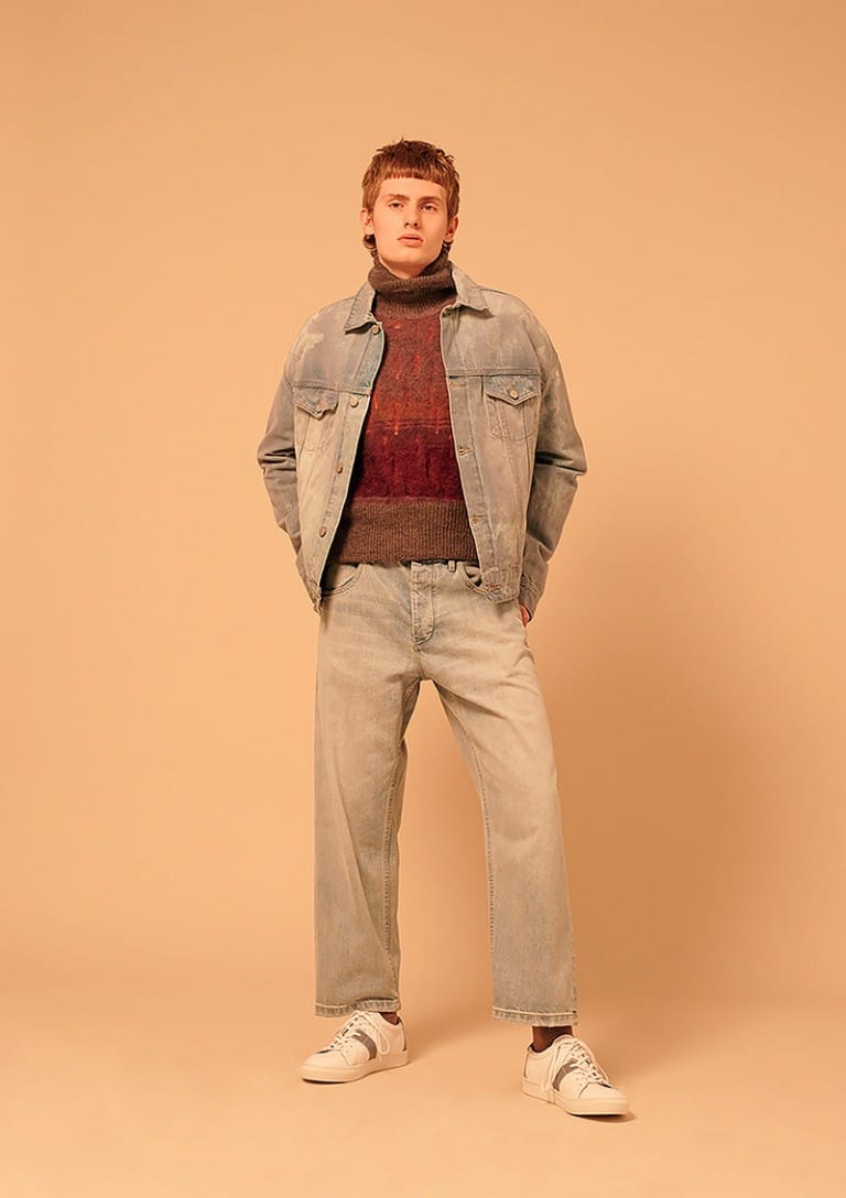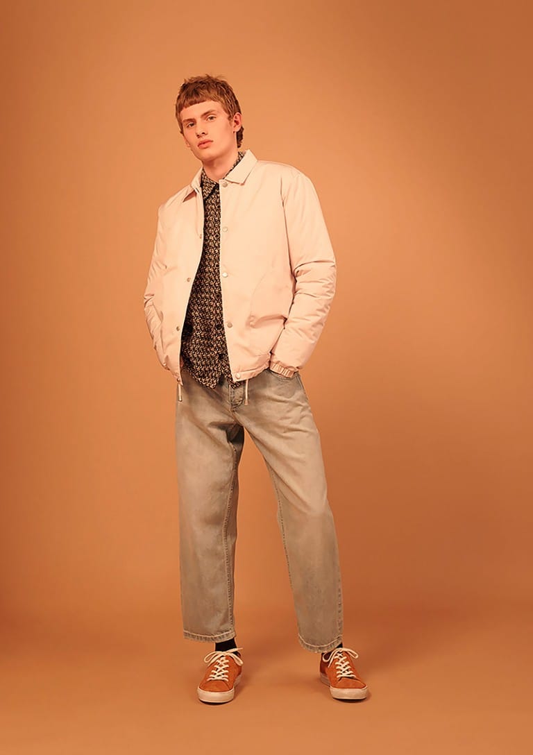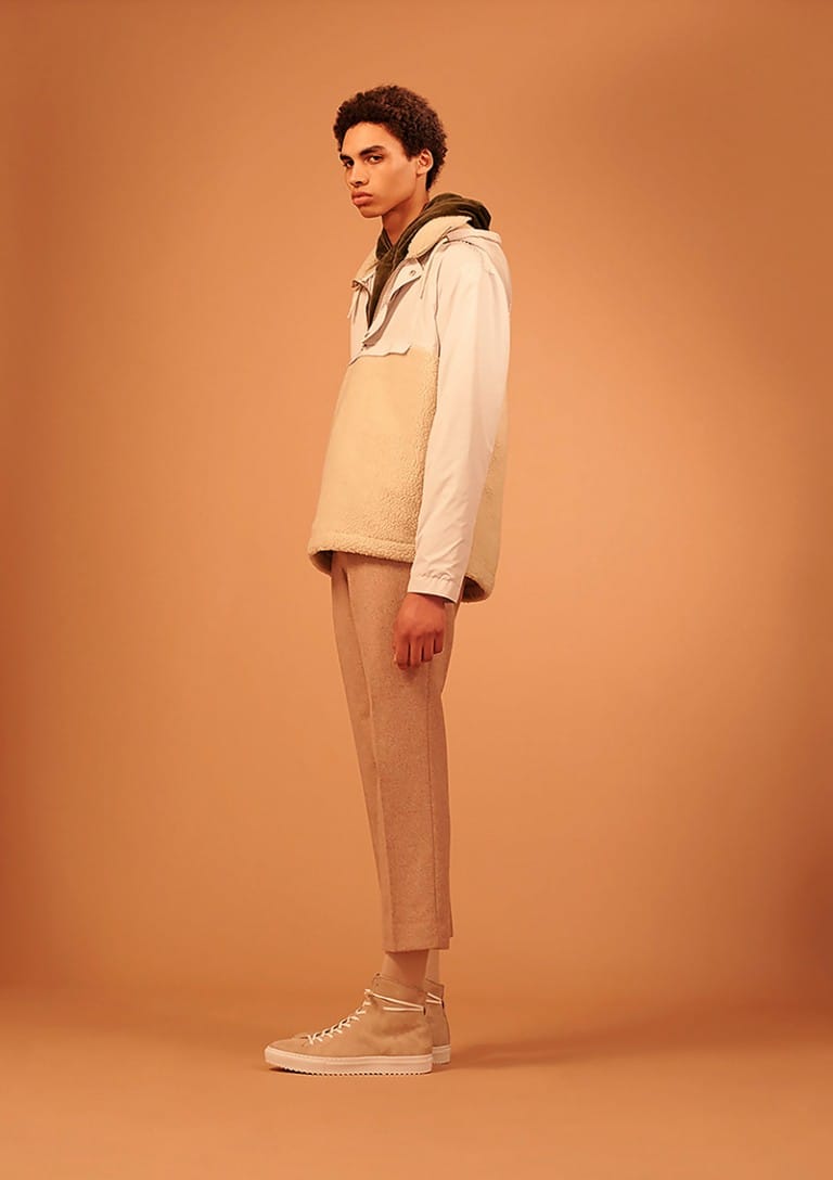 Created with the harsh Nordic winters in mind, ‘Malmo Icelandic’ consists of a selection of premium and heavy weight outerwear intended to combat the elements. Hero items include a sherpa jacket with suede pocket detailing, mohair knit jumper and coach jacket in keeping with this season’s key colour-way – pink. Fine flannel shirts serve as essential layering items and are paired with long-line cardigans and tees, honing in on a loose and slouchy silhouette. Adhering to a strict Nordic design aesthetic, the colour pallet is kept muted and minimal with cut and sew colour blocking used throughout.