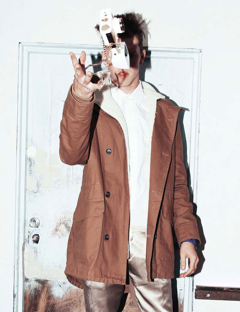 © by Sid / Photography Balint Barna / Styling Sergio Pacini / Grooming Kata Kertesz / Hair Deano Quinton Smith / Models Felix Branch at Elite, Jake Cooper at Select / Fashion & Brands Moncler, Christopher Raeburn, Lou Dalton, Globe Trotter, Quasimi, Oscar Quiroz, Topman Design, John Varvators, Mango, COS, Vertu, Olafur Eliasson, Asos, Casio, Fujifilm. Courtesy of coutequecoute.blogspot.com