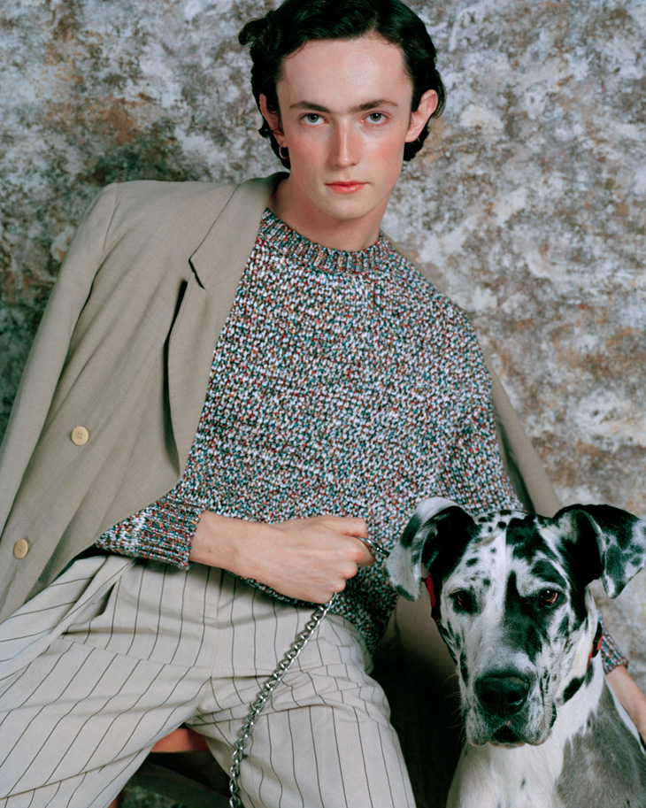“The handsome Dylan Johnstone at Elite Models teams up with fashion photographer Fenton Bailey at Tonic Reps for HungerTV. In charge of styling was Carlos Mangubat, with beauty from hair stylist Josh Knight at Caren using Tigi, and makeup artist Famida Pathan using Laura Mercier Skincare & Nars Cosmetics. Art direction and casting by Caplan & Smith.” – Malemodelscene.net