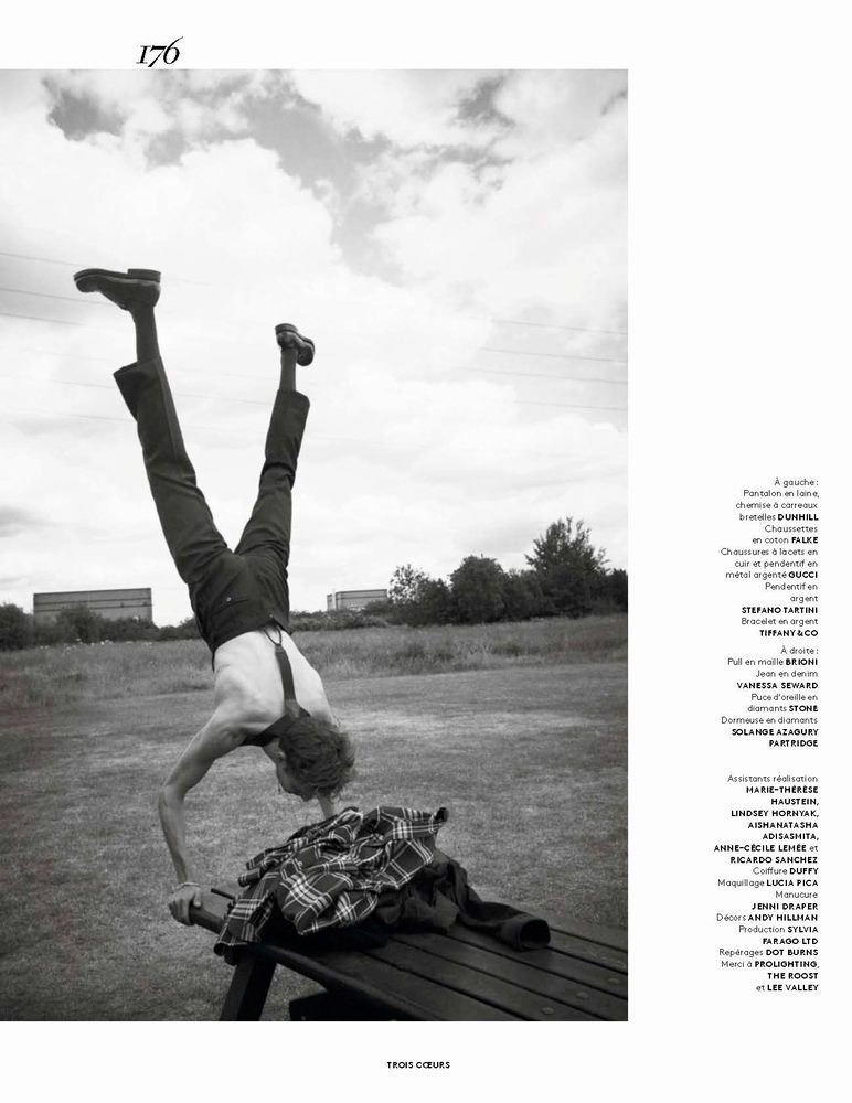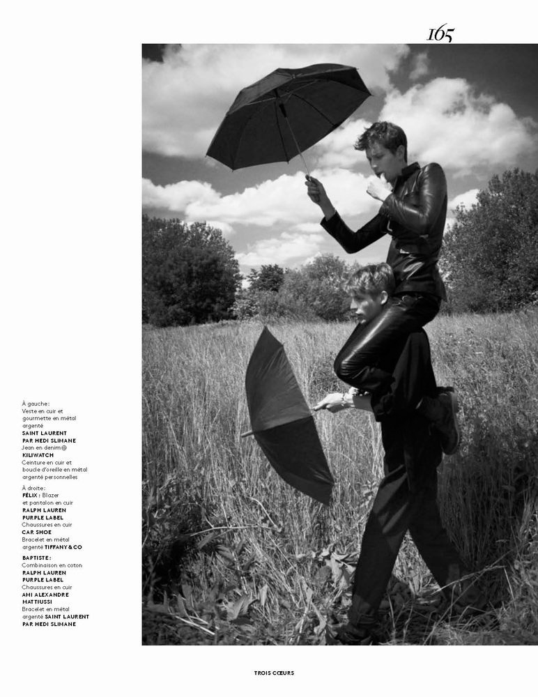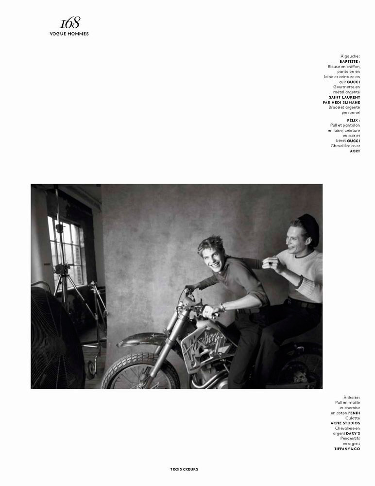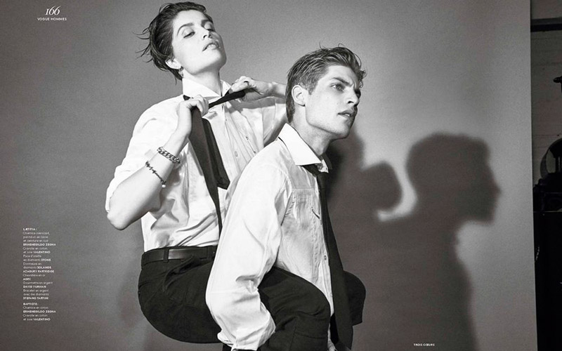 “Baptiste Radufe, Felix Gesnouin and Laetitia Casta photographed by Glen Luchford and outfitted by Anastasia Barbieri, for the Fall/Winter 2015 issue of Vogue Hommes.” – FY Magazine.es