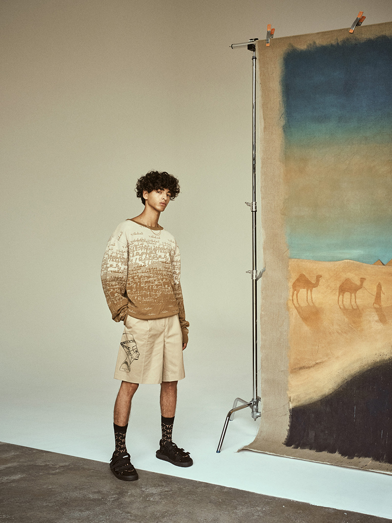 “My inspiration for this collection has been the phenomenon Fatamorgana (Fata Morgana), an optical illusion caused by exceptional heat, often experienced by exhausted pilgrimages traveling through the Sahara. When seeing a Fatamorgana the human brain often tends to show an illusion of one’s upmost desire in the current situation. To me, Fatamorgana is a way to express my motivation and desire and actively contribute to a unified future, not defined by borders, skin color, religion or economic status”. – Amir Hassan.