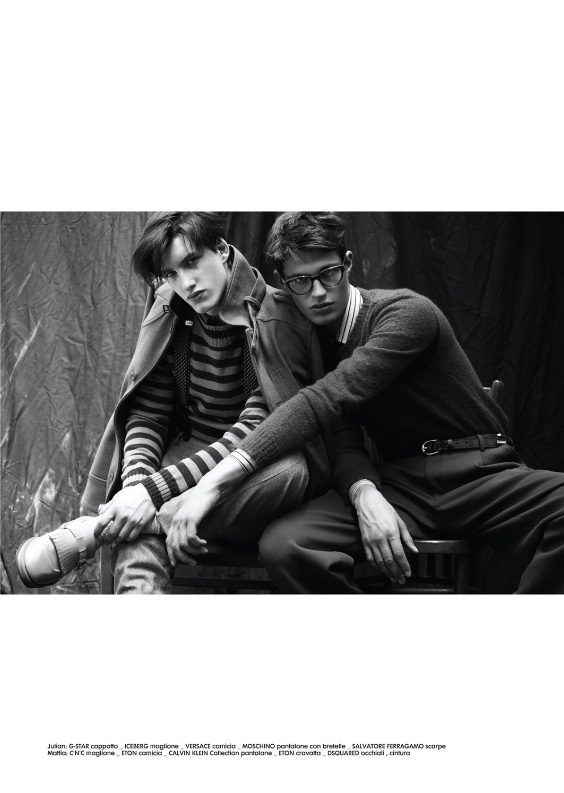Saverio Cardio and Lucio Colapietro capture and style Julian Henning and Mattia Regonaschi in this contemporary shoot for Maxime Magazine. Courtesy of – hommemodel.blogspot.com