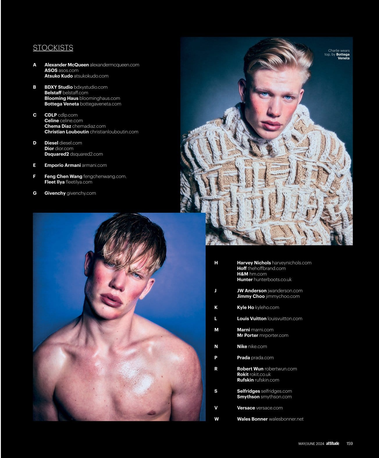 Twosome Models Charlie Stephens & Eden Huang In “Celebration !” Shot By Vasilis Rallis For 30th Anniversary Issue Of Attitude Mag.