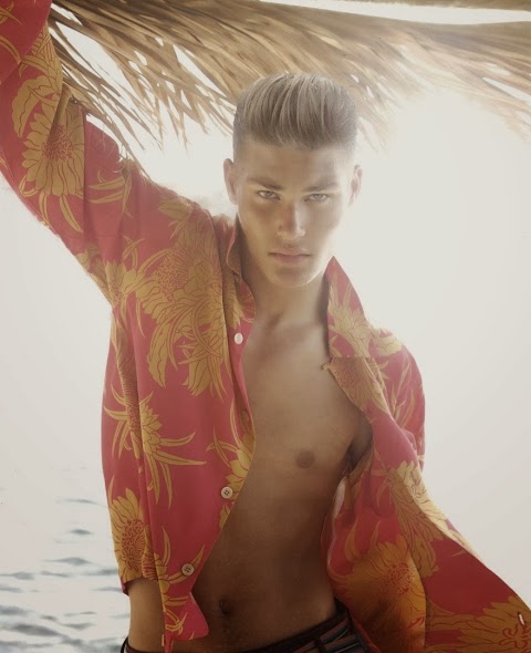 British model Tyler Maher at D’Men is photographed by Juan Martin and styled by Juanjo Manez in the story ‘Caribbean King’ for the new fifth issue of ODDA magazine, with creative direction by David Martin. Courtesy of – Homotography