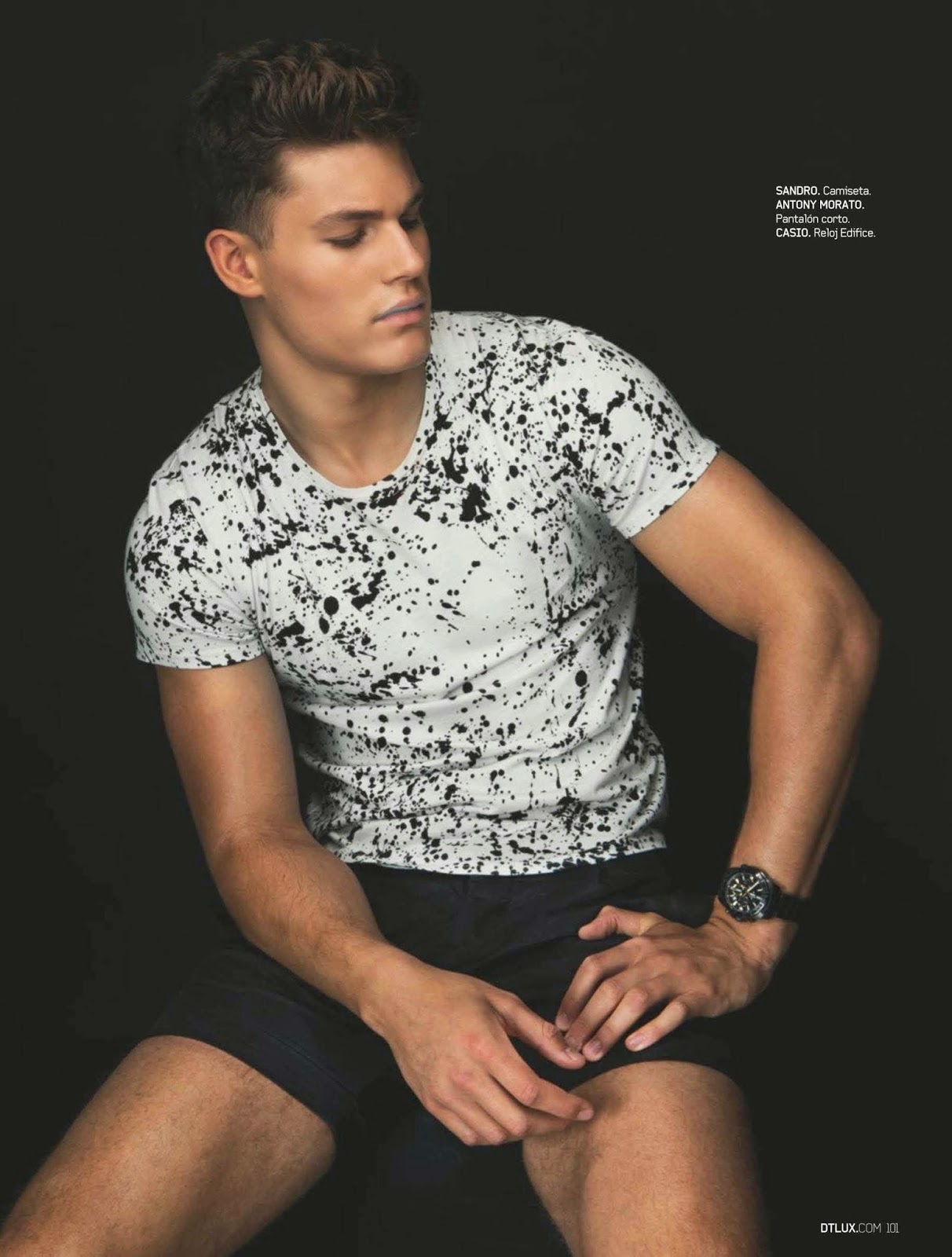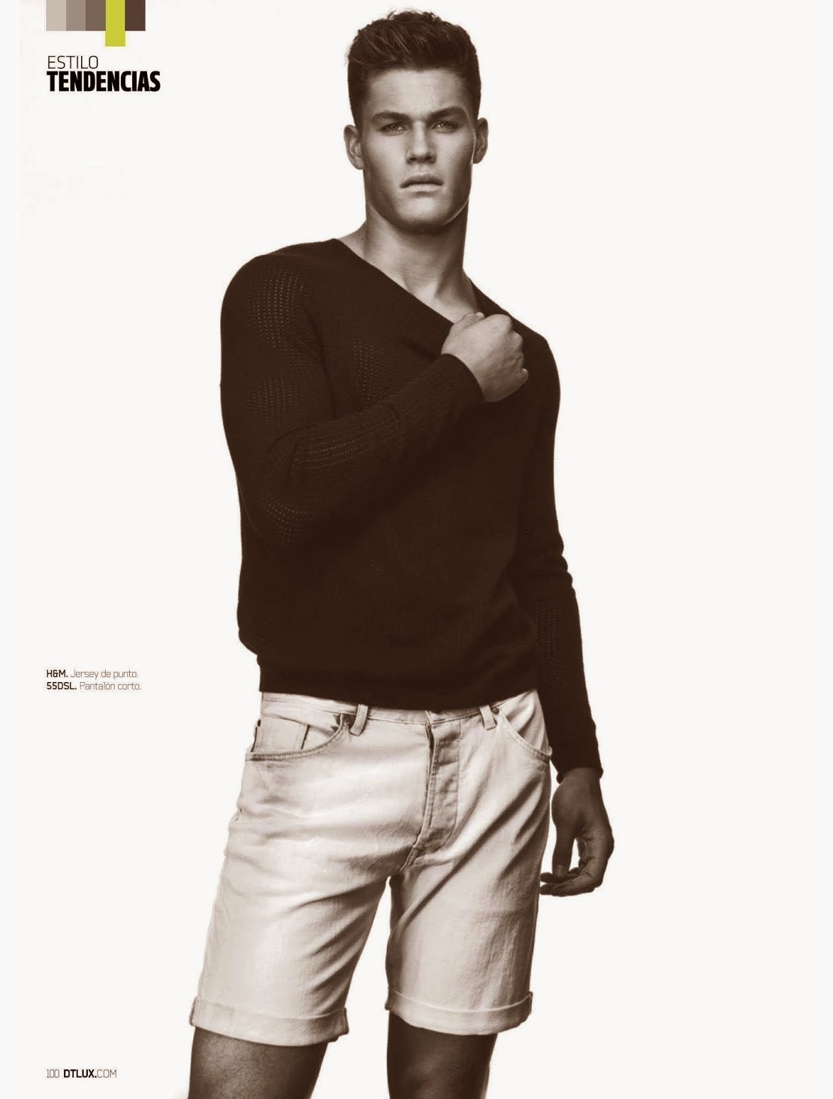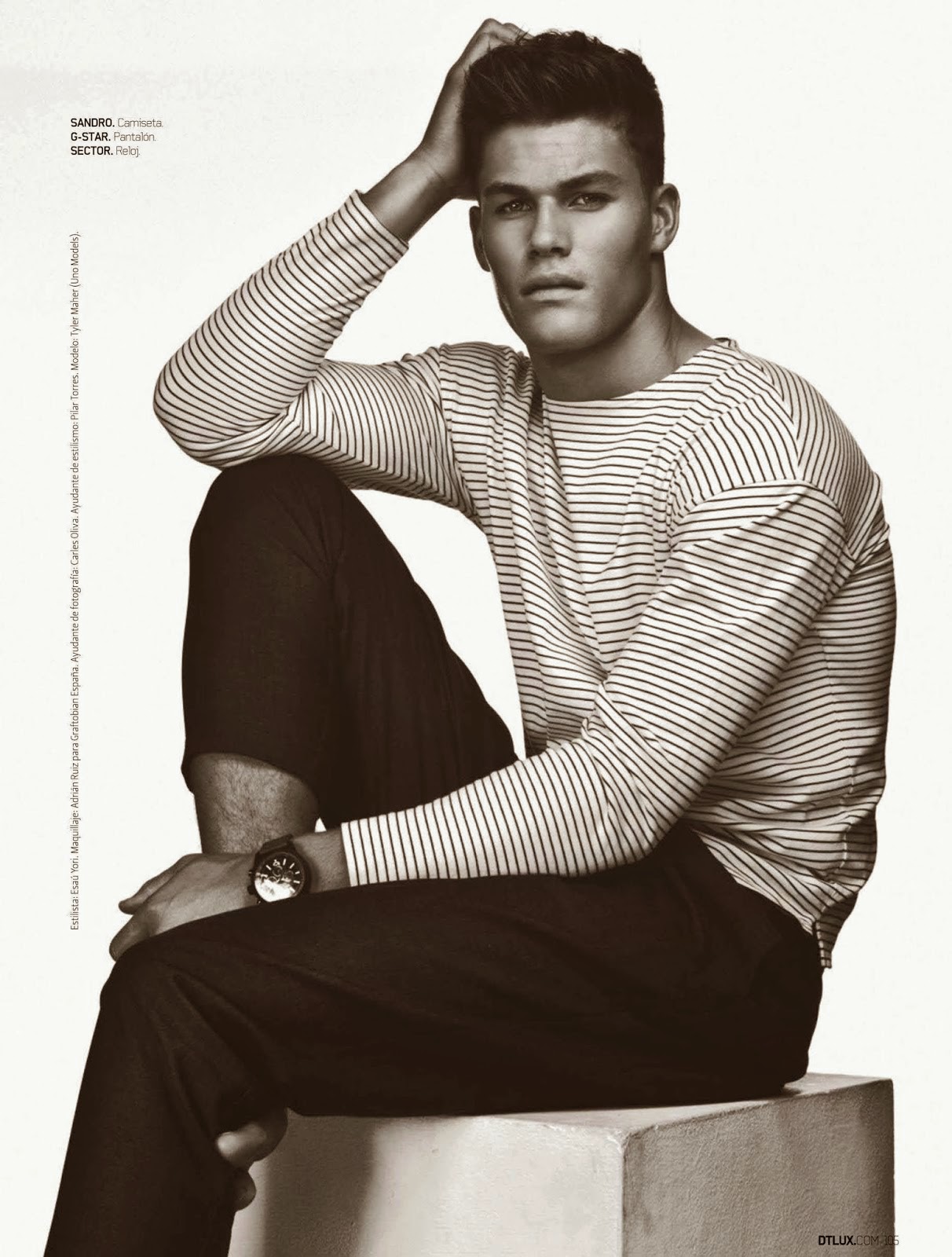 “El Hombre Tranquilo–Following a simple story for Open Lab, model Tyler Maher appears in the June issue of DT Spain. Sitting for photos in studio, Tyler connects with photographer Edu Garcia and stylist Alberto Garrido. Modeling young contemporary styles, fashions from Lacoste, Sandro and Diesel come together, with t-shirts, sweaters, polo shirts and summer shorts stealing the scene.” – The Fashionisto