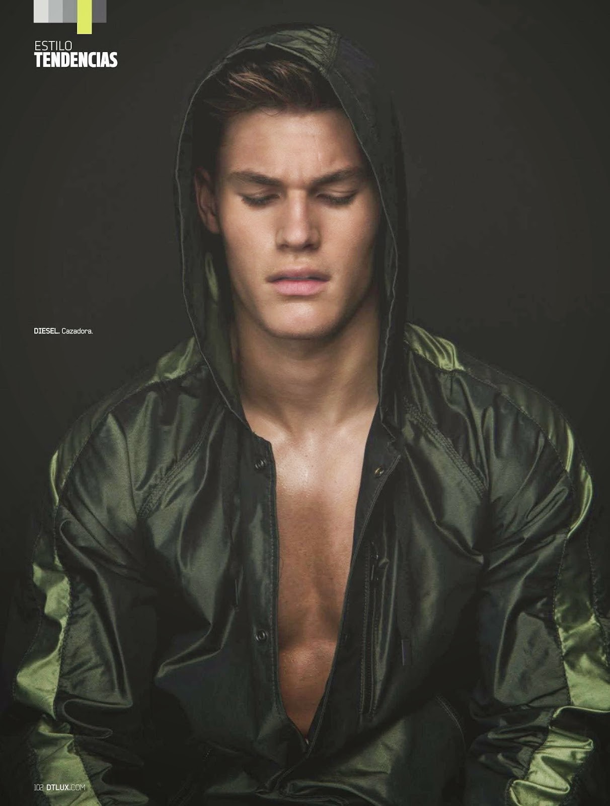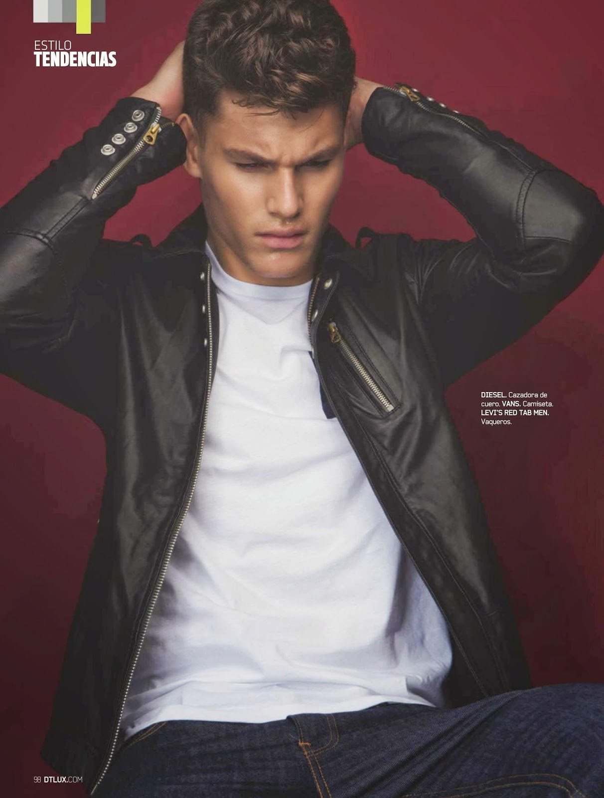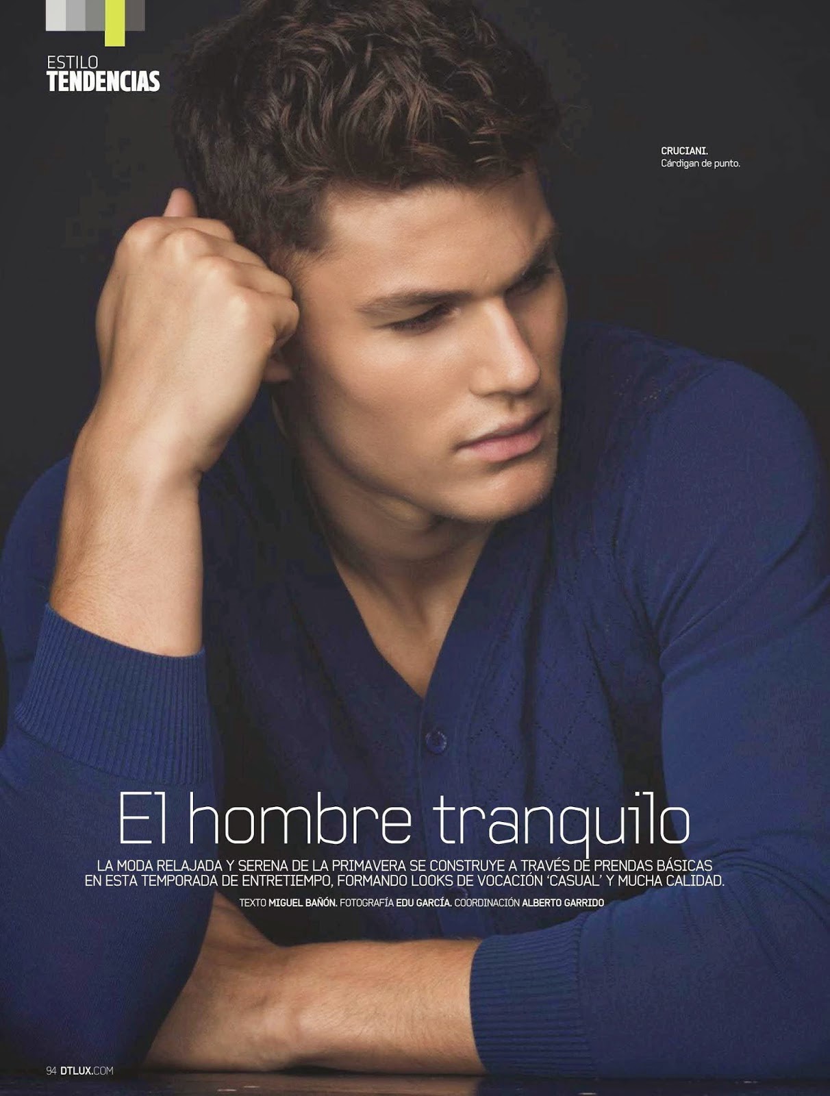 “El Hombre Tranquilo–Following a simple story for Open Lab, model Tyler Maher appears in the June issue of DT Spain. Sitting for photos in studio, Tyler connects with photographer Edu Garcia and stylist Alberto Garrido. Modeling young contemporary styles, fashions from Lacoste, Sandro and Diesel come together, with t-shirts, sweaters, polo shirts and summer shorts stealing the scene.” – The Fashionisto