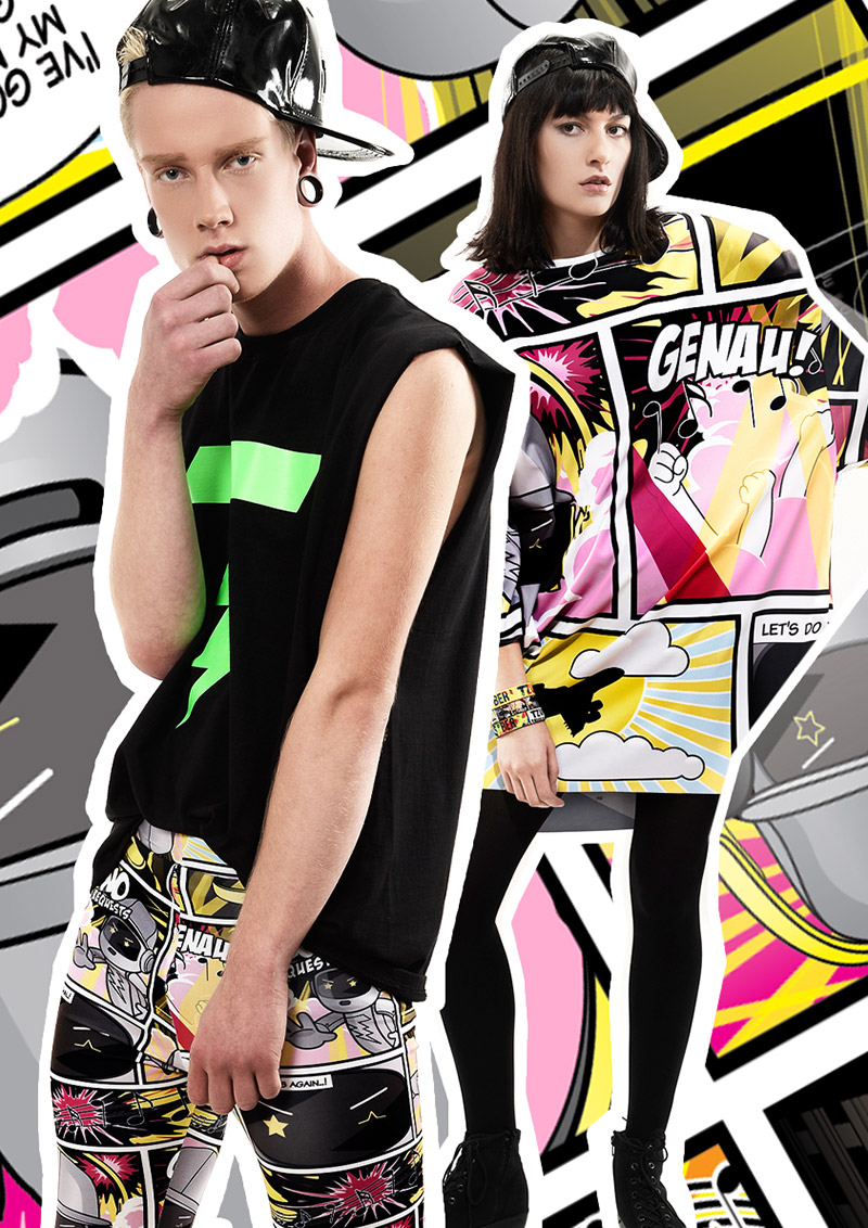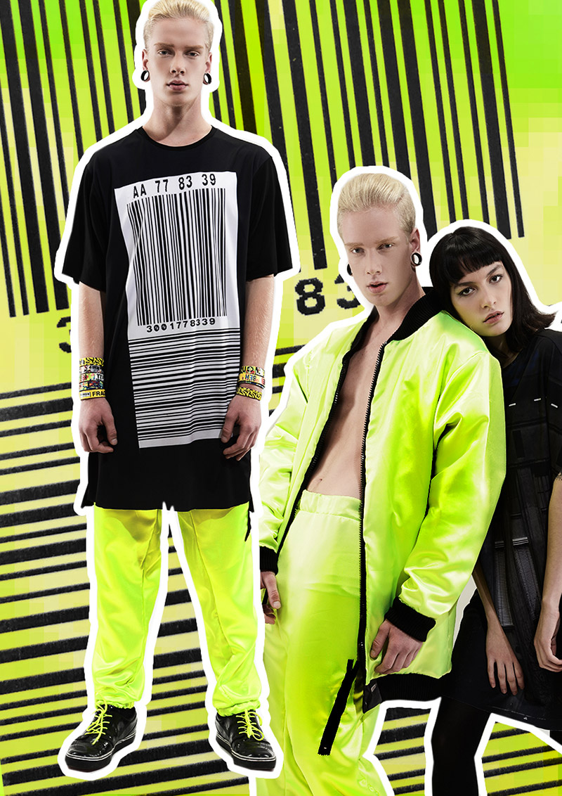 The brainchild of DJ/hitmaker Larry Tee (Rupaul, Party Monster, Electroclash), TZUJI shows it’s fourth collection in their new home of Berlin. These sporty clothes are decorated with the color splash camo prints, the photo facade of Berlin megaclub Berghain, subway grates, flight boarding passes, and psychedelic baggage bar codes. Add some slippery satin sweatshirts and cargo pants and you have a contemporary night club fantasy. Of course you don’t need to be a hip hop star, a DJ or a nightclubbing celebrity to rock the TZUJI Travelista Collection, but it certainly couldn’t hurt.