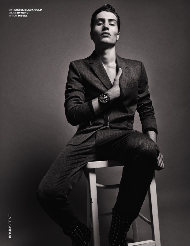 For the set Ugo was styled in selected pieces from brand such as Let’s Funk, Sandrine Philippe, Lanvin, Isabel Benenato, Rynshu, Pepe Jeans, Versace, Diesel, Ainur Turisbek, Diesel Black Gold, Zana Bayne, and Harmony. Ugo Carminati is represented by Success Models in Paris.” – Malemodelscene.net